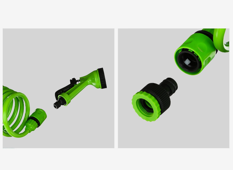 Шланг поливочный спиральный, 7,5 м, быстросъёмный, с поливочным пистолетом и штуцером, зелёный, Greengo