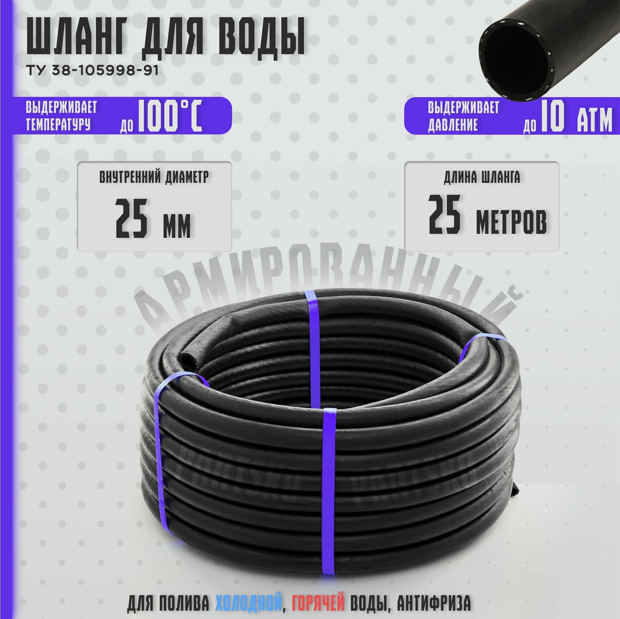 Купить Шланг для полива 1 дюйм / 25 метров. Резиновый для сада, дома и дачи. Армированный поливочный шланг 3-х слойный для горячей/холодной воды и антифриза. Высокопрочный из резины.