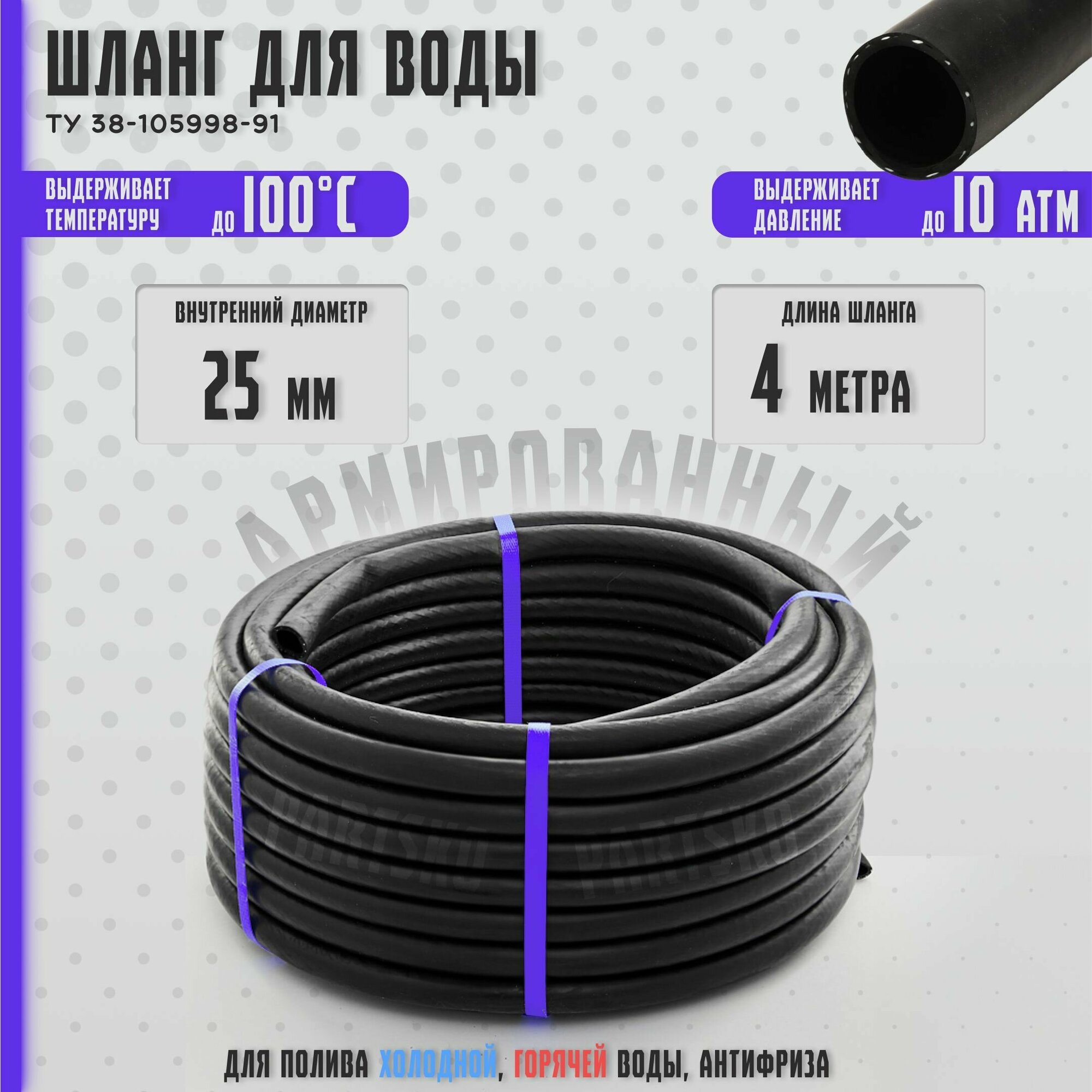 Купить Шланг для полива 1 дюйм / 4 метра. Резиновый для сада, дома и дачи. Армированный поливочный шланг 3-х слойный для горячей/холодной воды и антифриза. Высокопрочный из резины.