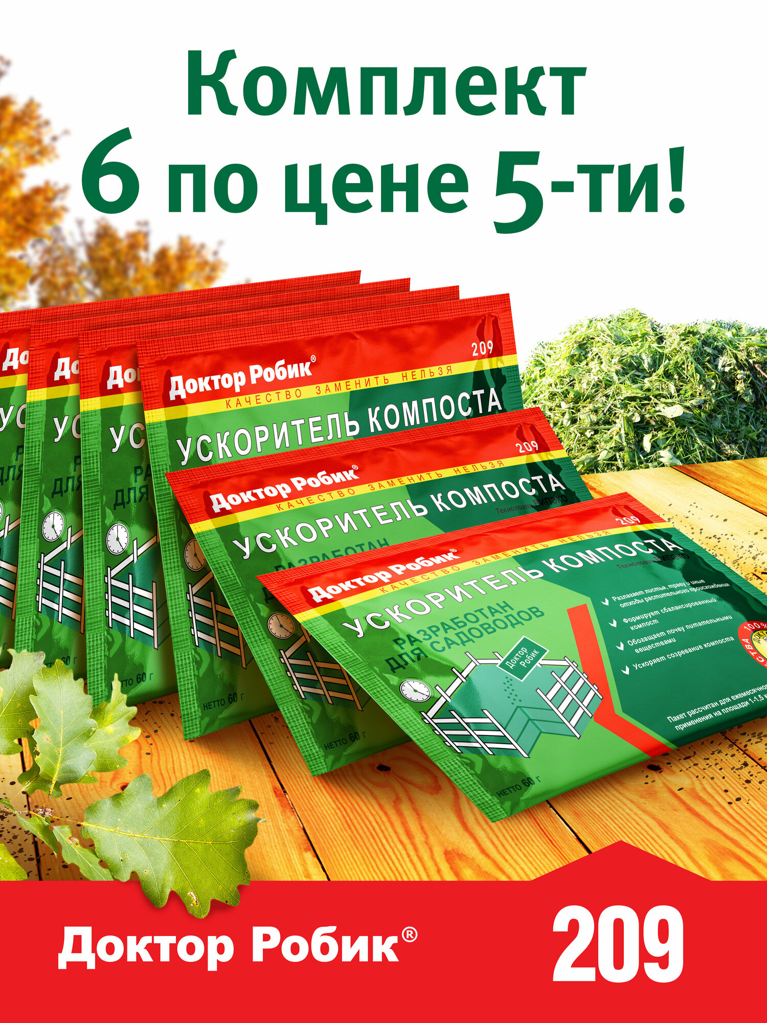Доктор Робик Ускоритель компоста 209, биоактиватор 6 шт по 60 г интересное: