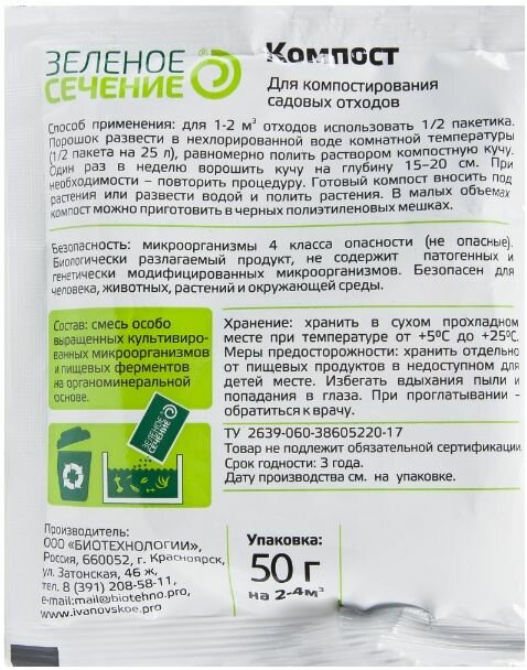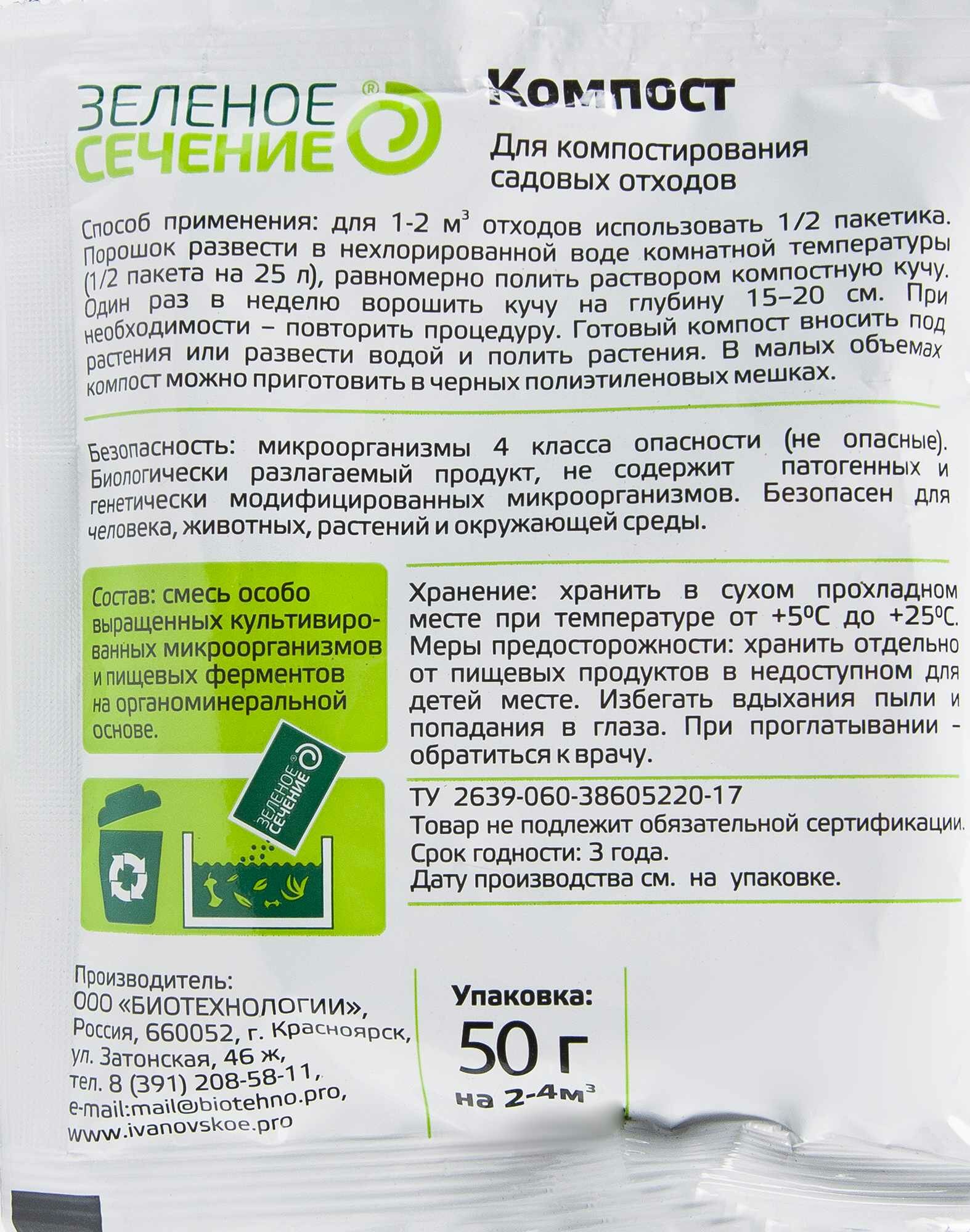 Средство для компостирования садовых отходов "Зеленое Сечение", "Компост", 50 г интересное: