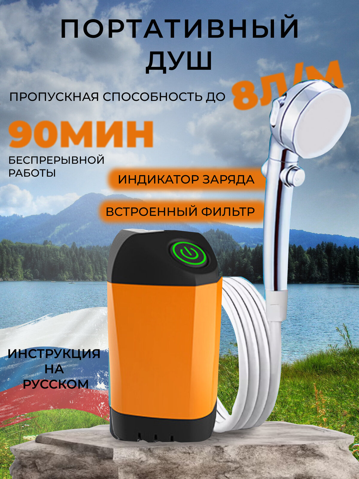 Душ туристический садовый походный для кемпинга и дачи оранжевый интересное: