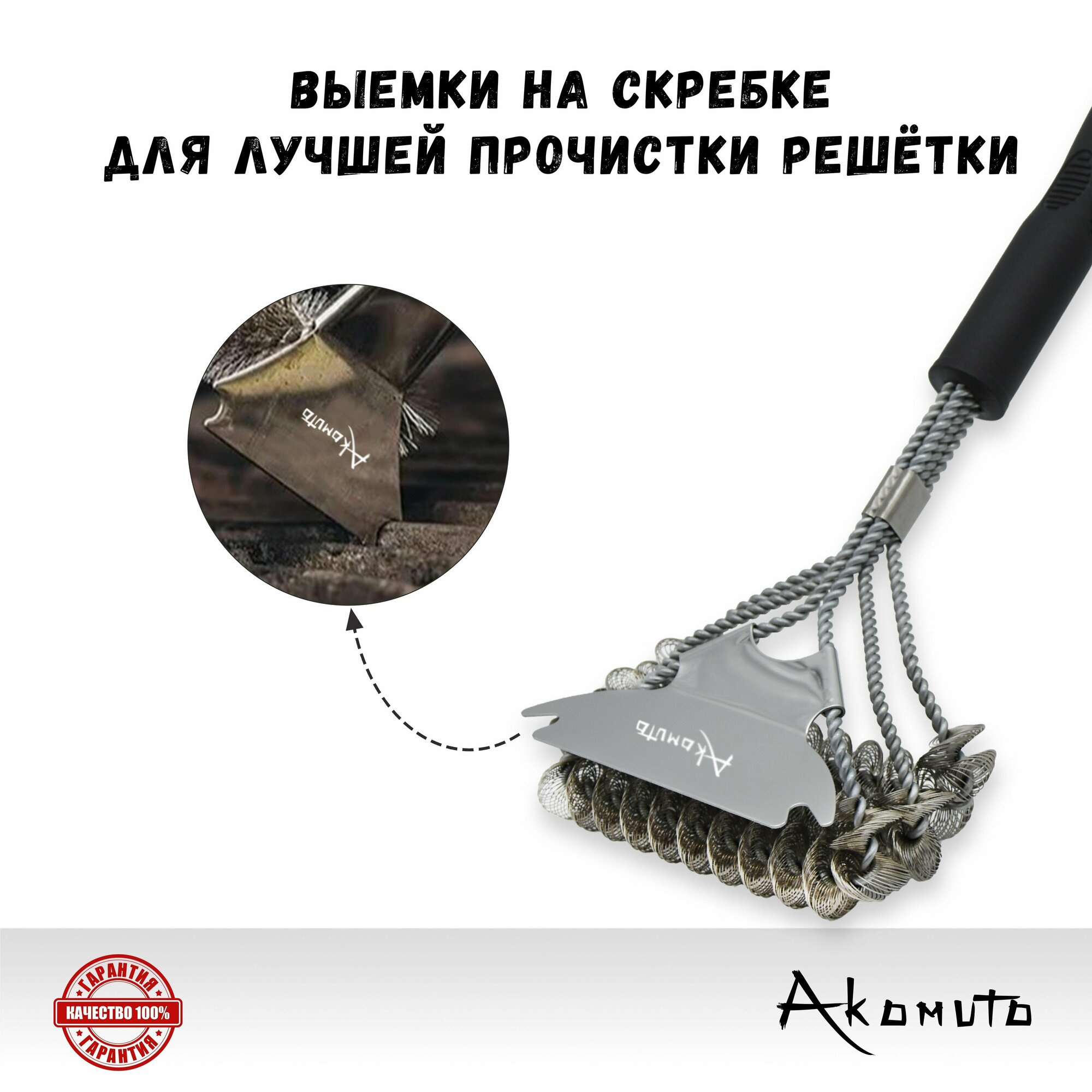Premium щетка для гриля, барбекю, нерж. сталь, Akomuto