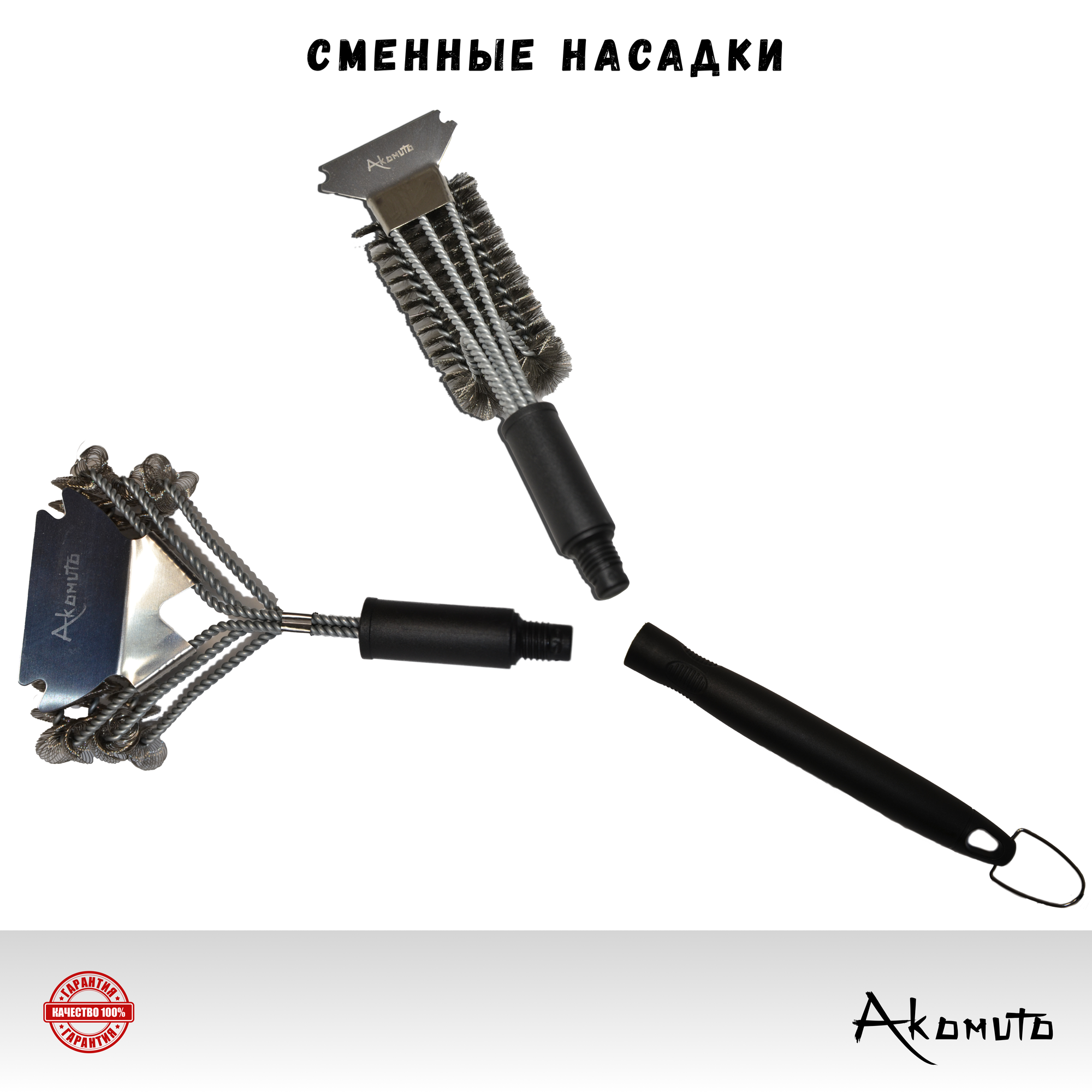 Щетка для гриля, барбекю, шампуров со сменными насадками (нержавеющая сталь) длина 45 см, Akomuto