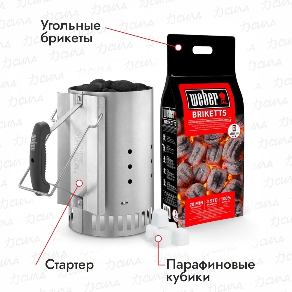 | Комплектация | стартер, 2 кг угольных брикетов, 3 парафиновых кубика |