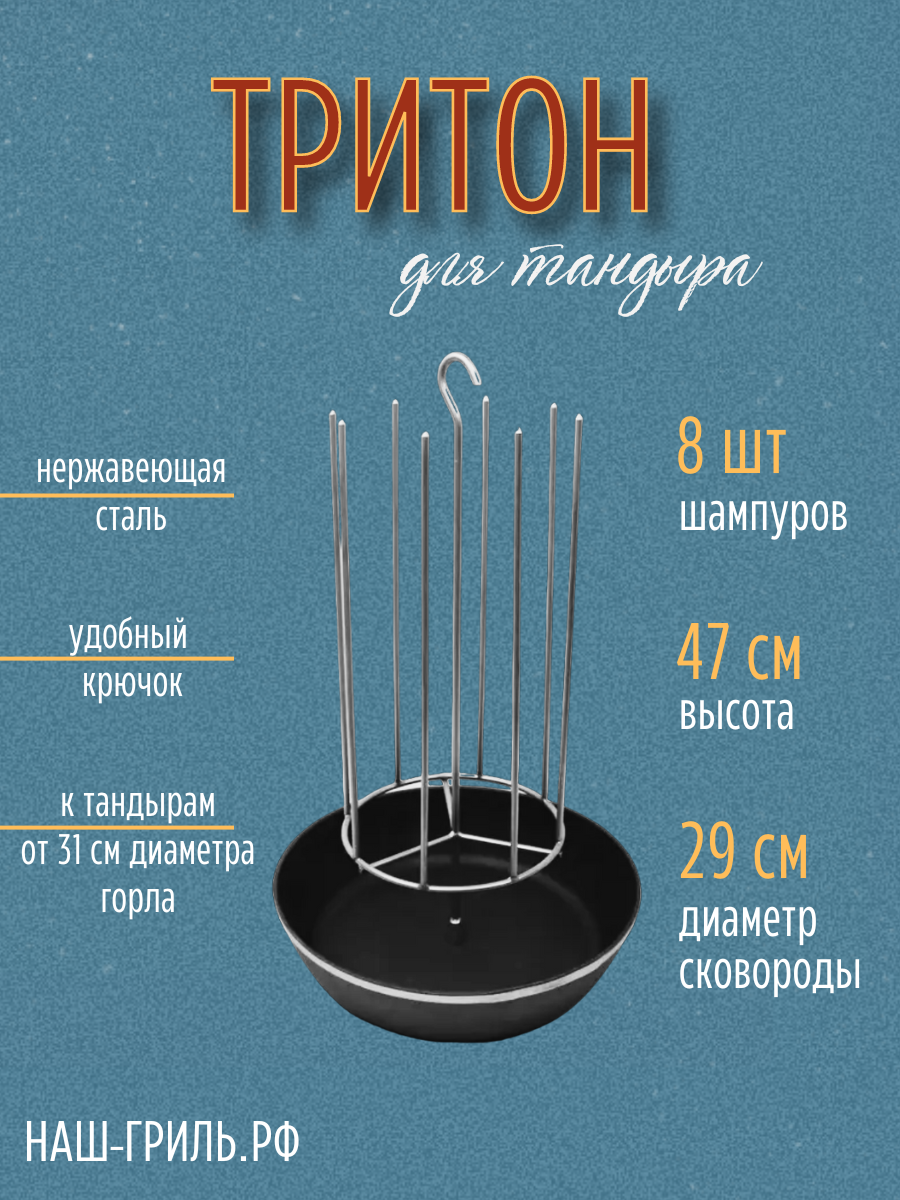 Тритон для тандыра с крючком 8 шипов, с чугунной сковородой 29 см интересное: