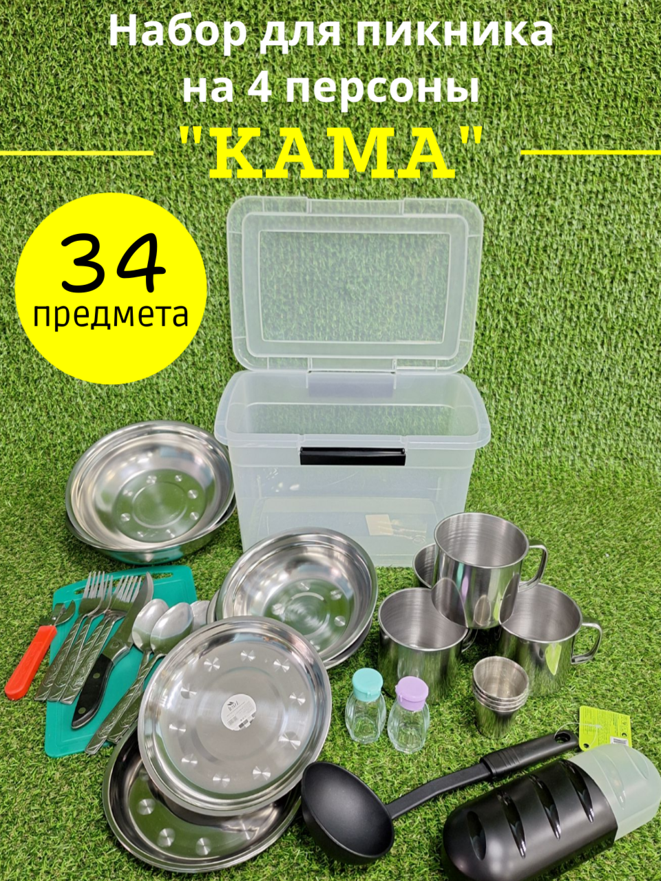 Набор для пикника на 4 персоны "Кама", 34 предмета, Набор для кемпинга, Набор рыболова, Набор охотника интересное: