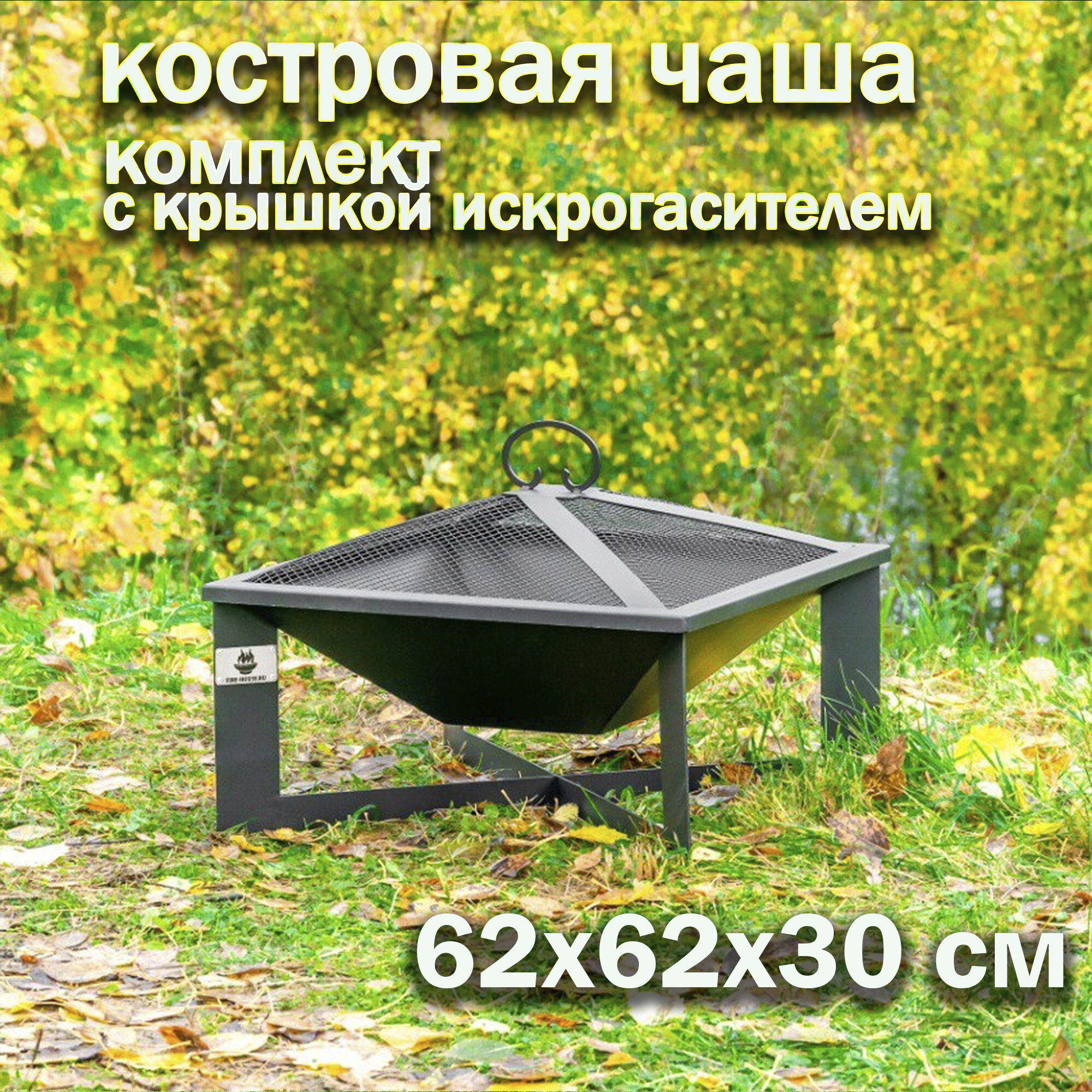 Костровая чаша PLAZA 62х62 см с крышкой искрогасителем / Чаша для костра FIRE-HOUSE интересное: