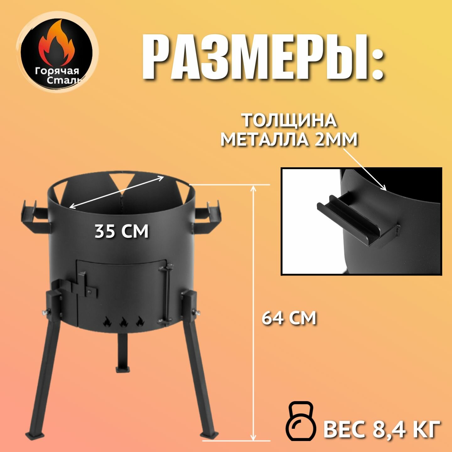 Печь для казана 8-10 литров из металла 2мм, диаметром 35см. Горячая Сталь интересное: