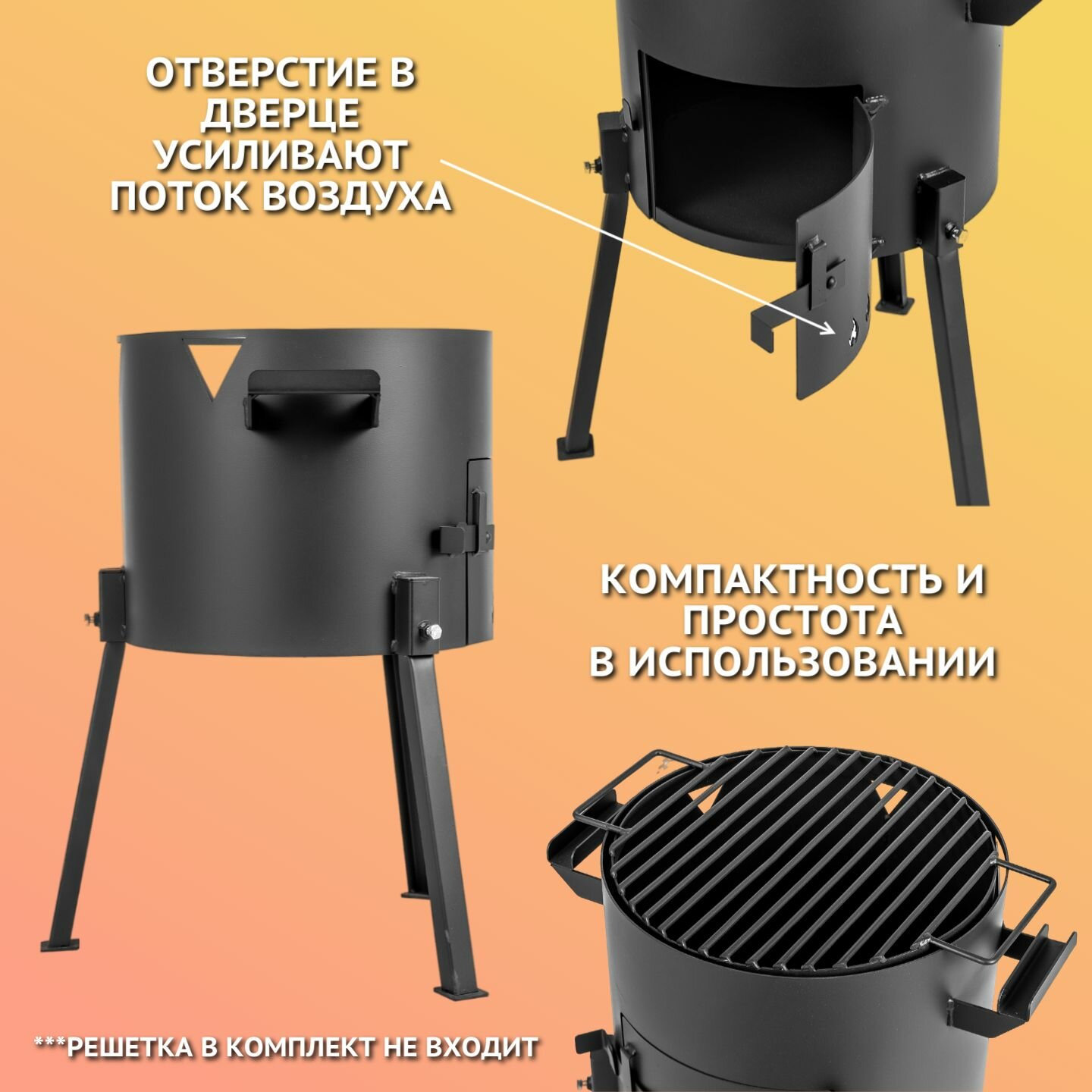 Печь для казана объемом 10 литров с ручками, съемные ножки, зольник