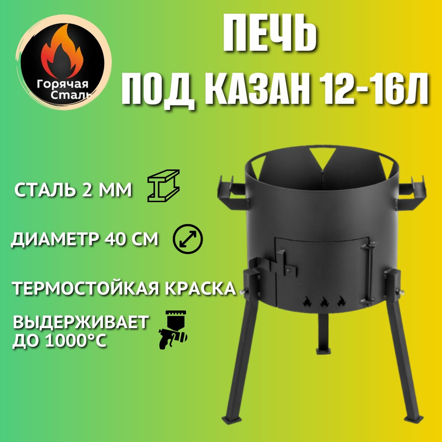 Печь для казана 6-8 литров из металла 2мм, диаметром 33см для дома и дачи. Горячая Сталь