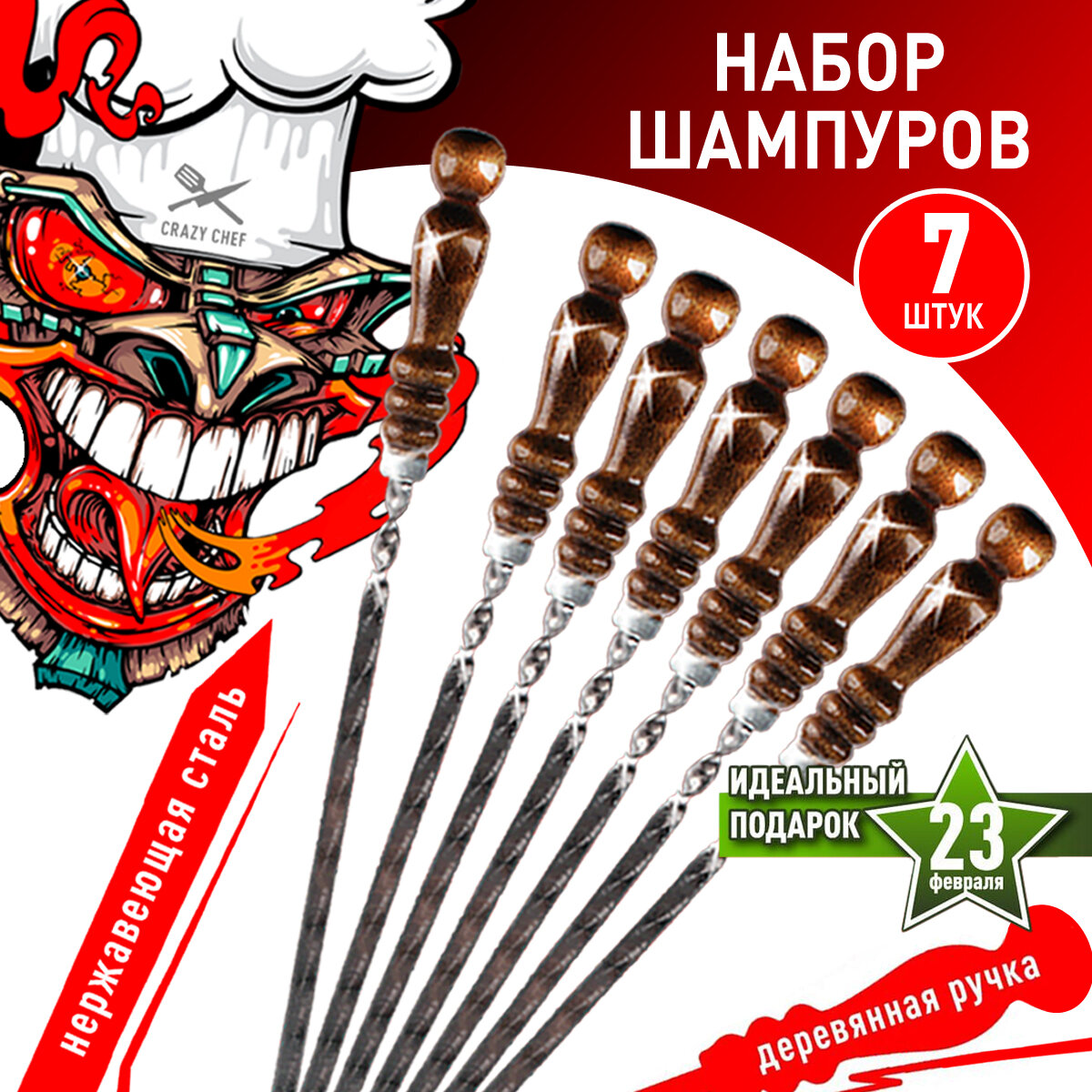 Купить Набор шампуров 62 см 7 штук / Шампуры из нержавеющей стали с деревянной ручкой из бука