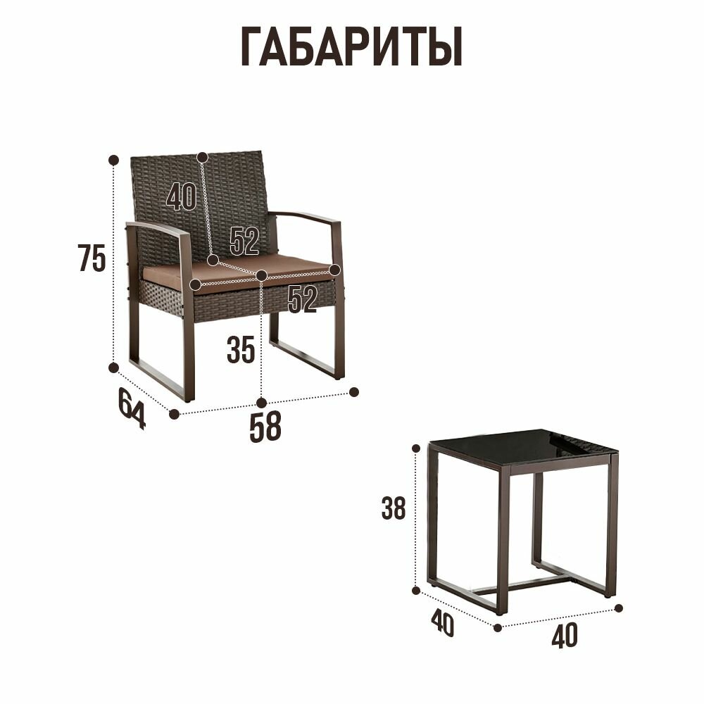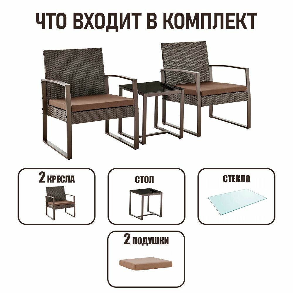 Комплект садовой мебели для дачи и сада из стали и пластика под ротанг Йорк Дуэт, шоколадный интересное: