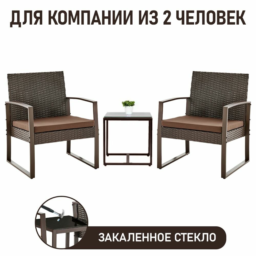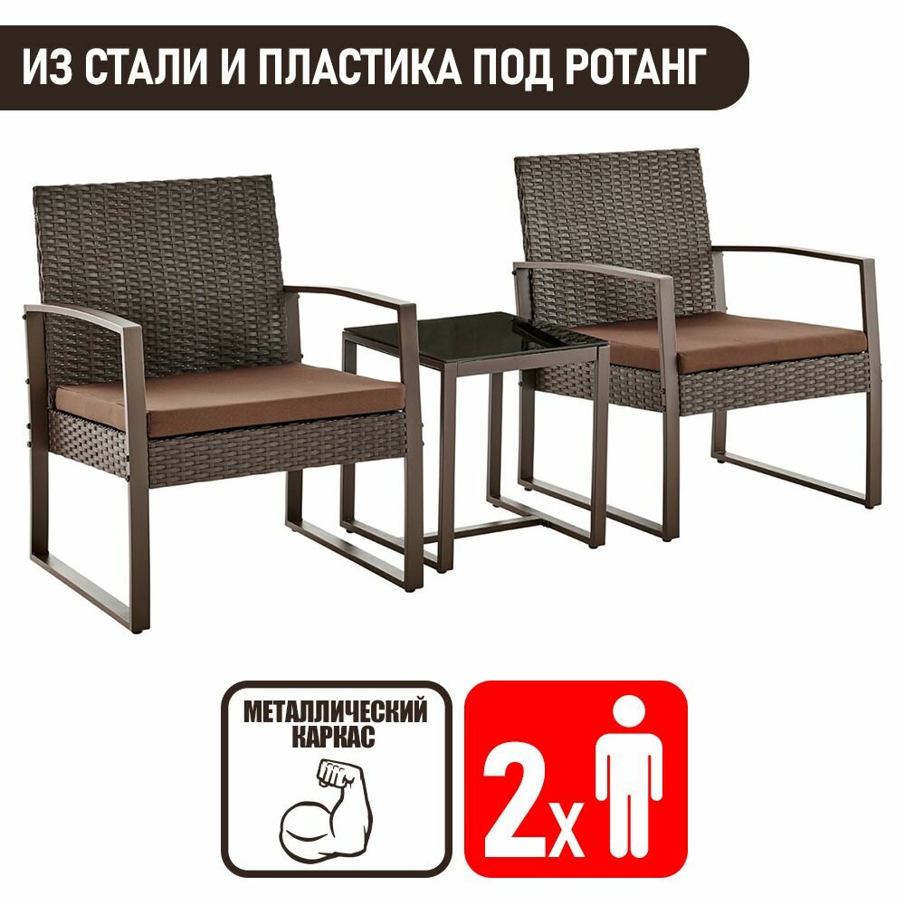 Купить Комплект садовой мебели для дачи и сада из стали и пластика под ротанг Йорк Дуэт, шоколадный
