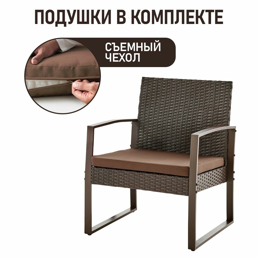 Комплект садовой мебели для дачи и сада из стали и пластика под ротанг Йорк, шоколадный