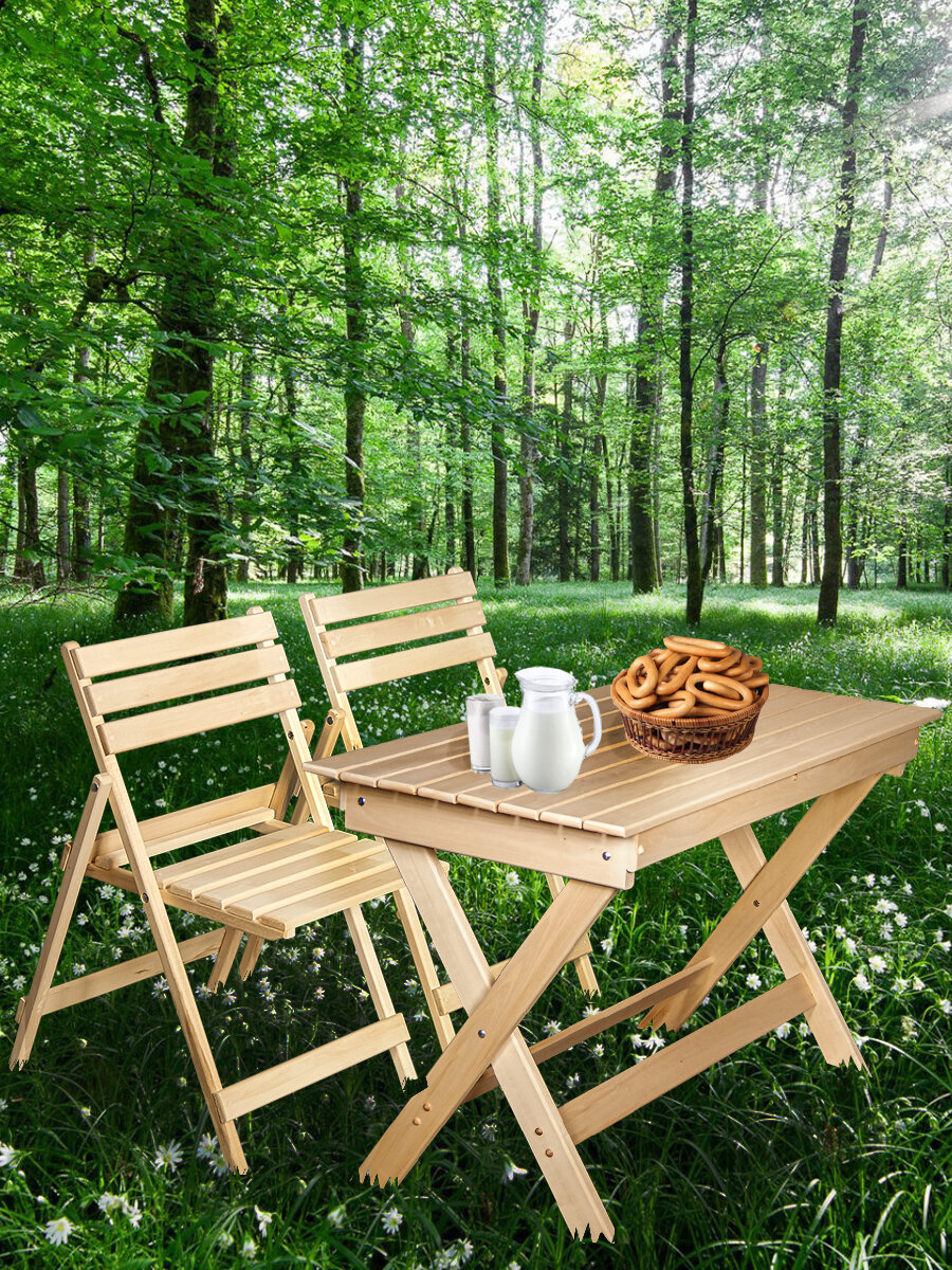 Набор садовой мебели складной Стол 120х60х76 и стул 2 штуки массив липы / комплект садовой мебели / для дачи интересное: