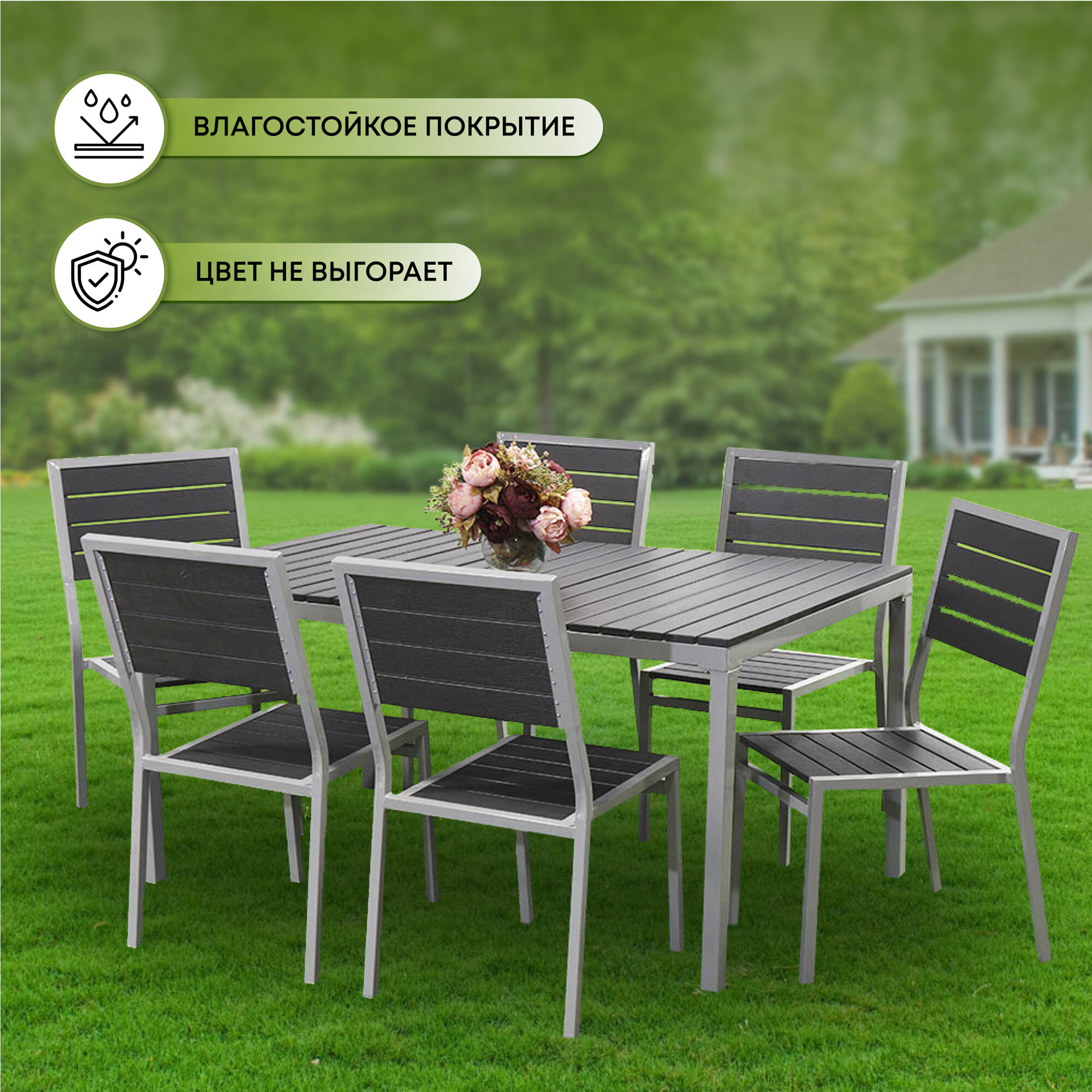 Мебель садовая Green Days, Эллада, серая, стол, 140х70х70 см, 6 стульев, 120 кг, YTCT009-1