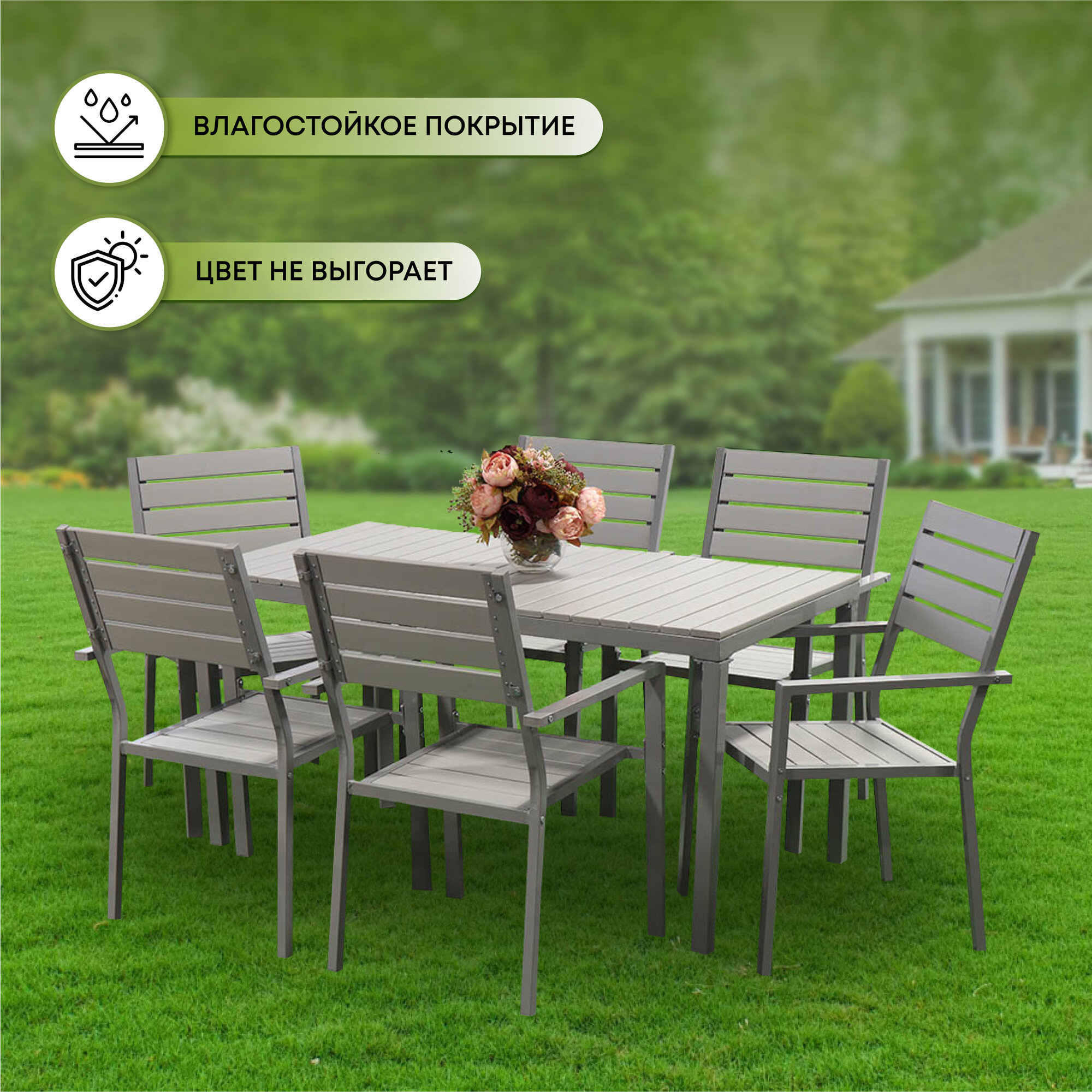 Мебель садовая Green Days, Эллада, серая, стол, 140х70х70 см, 6 стульев, 120 кг, YTCT009-1