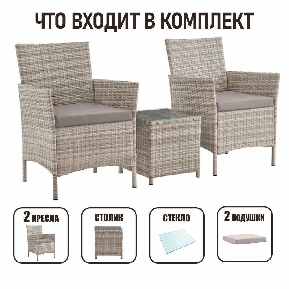 Садовая мебель для дачи Киото Дуэт комплект на 2 персоны из искусственного ротанга, серый меланж