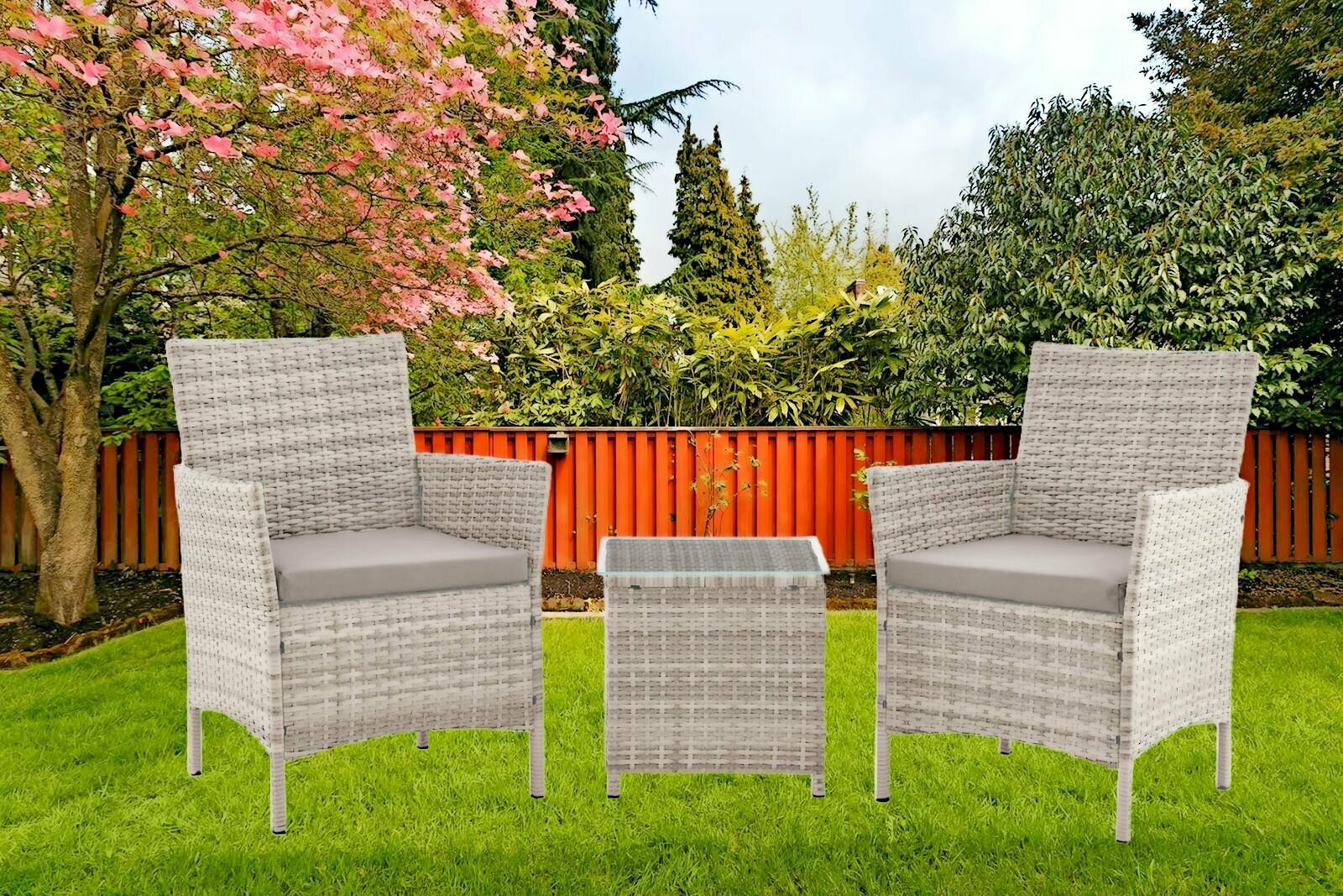 Купить Набор садовой мебели столик и два кресла с подушками Киото Дуэт серый
