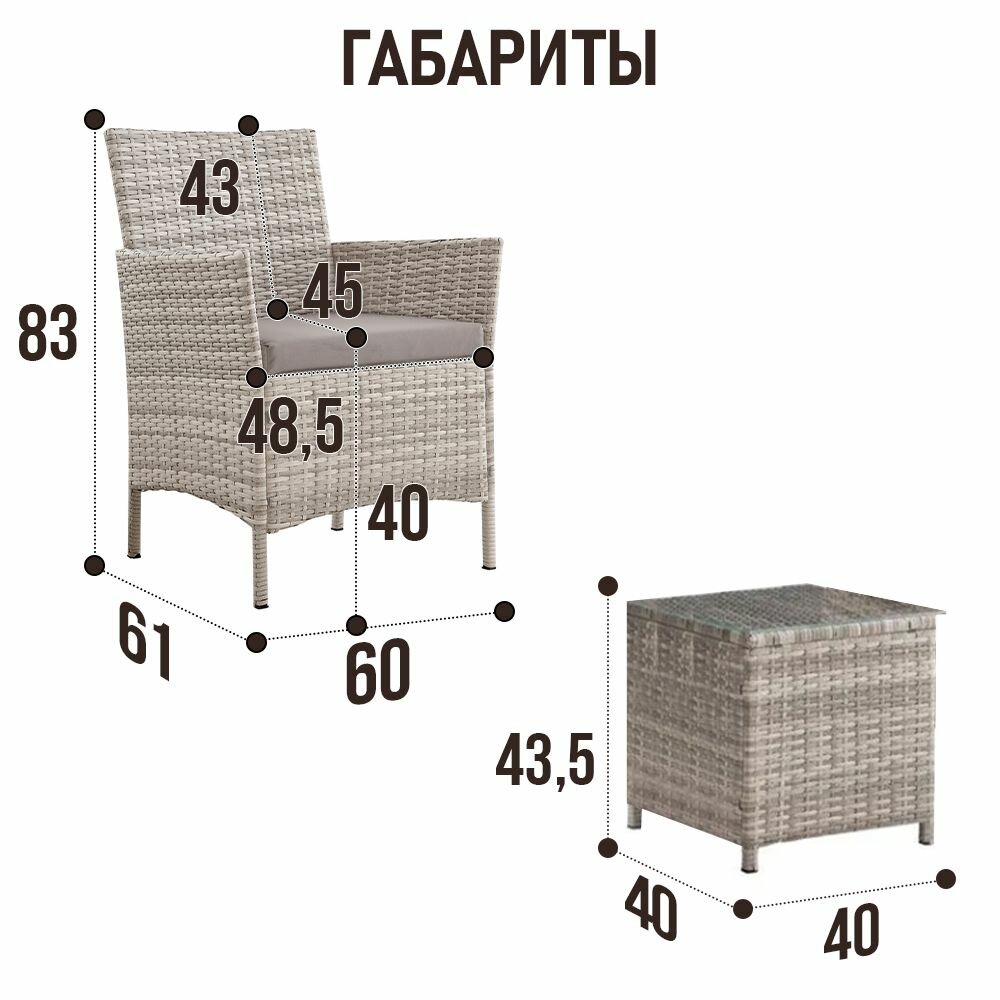 СохранитьНабор садовой мебели столик и два кресла с подушками Киото Дуэт серый интересное:
