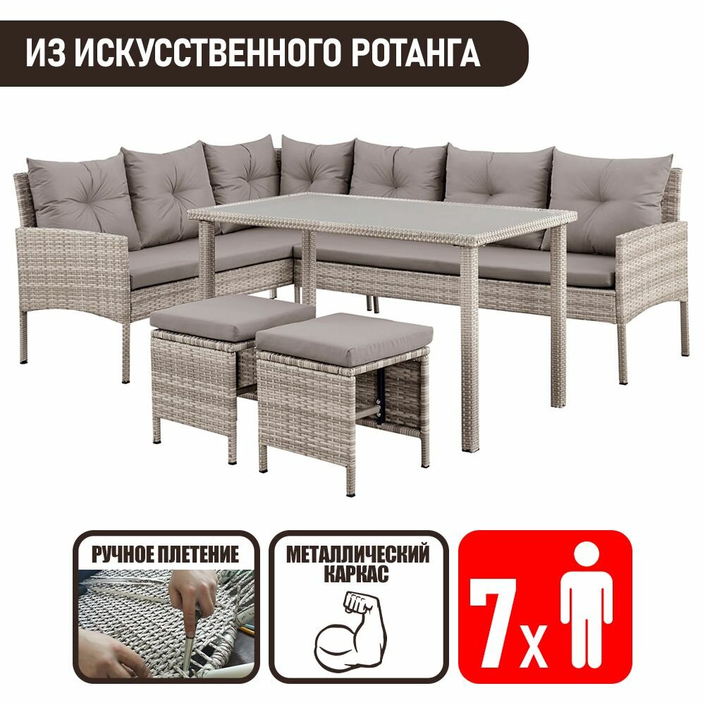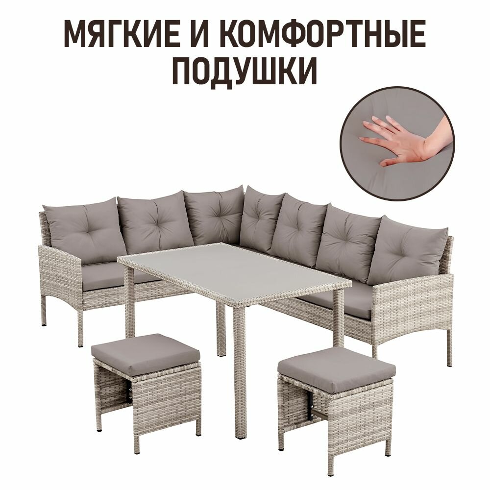 Набор садовой мебели Фьорд Корнер-7 из искусственного ротанга серый интересное: