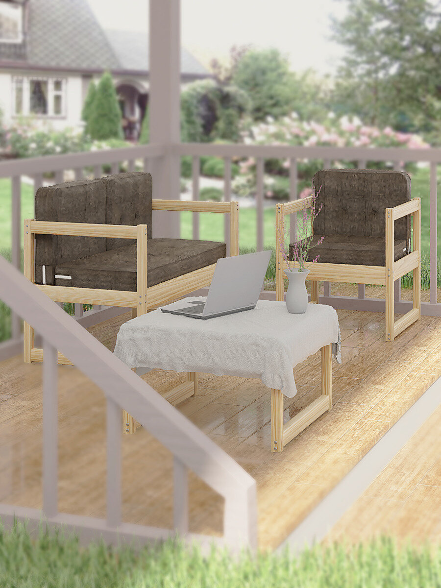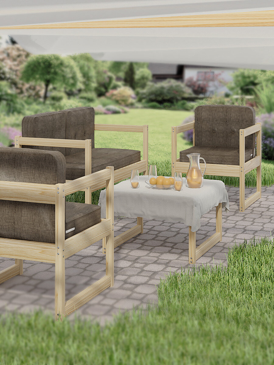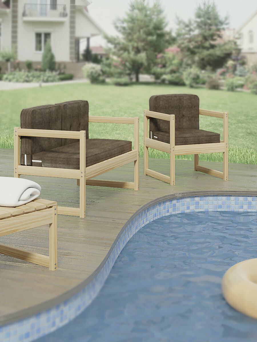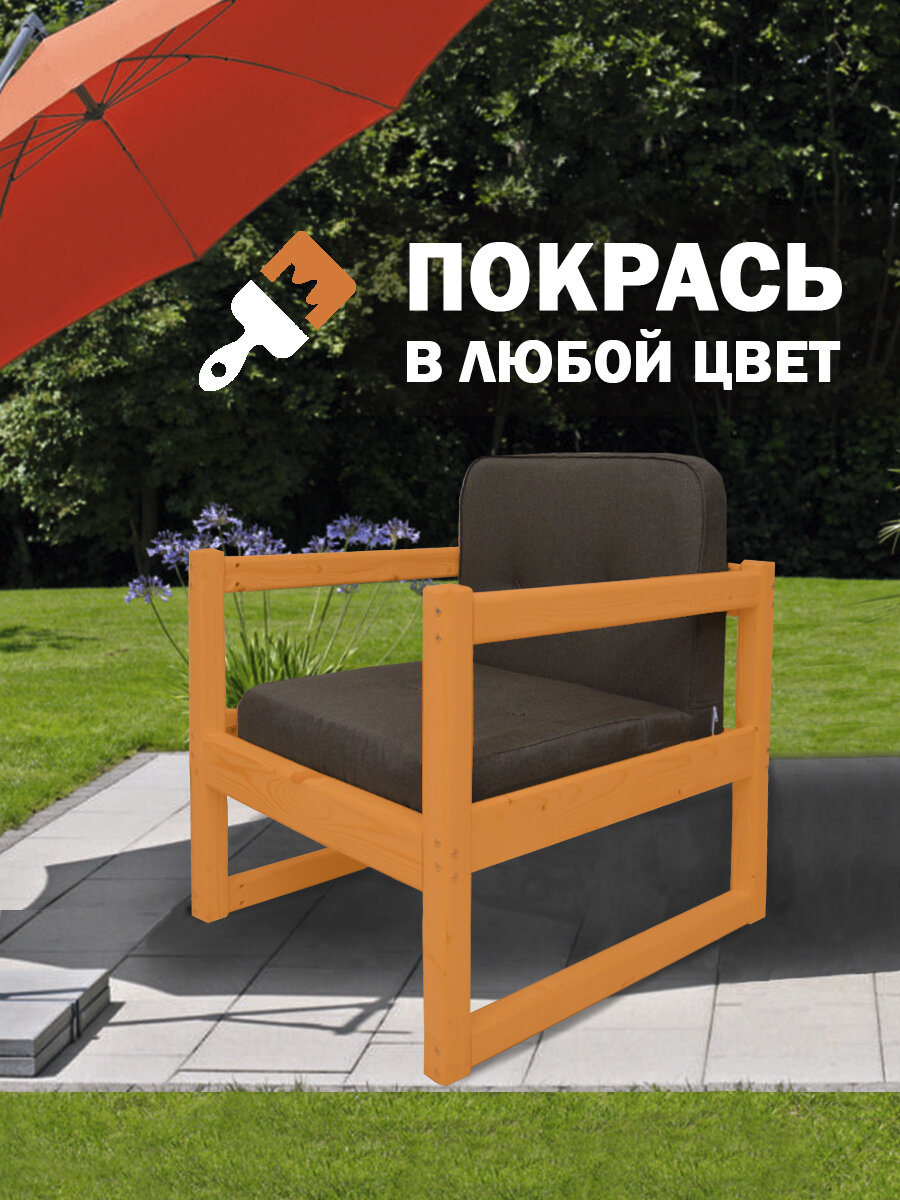 Садовое кресло с подушками 75х70х75 массив сосны / кресло садовое / кресло для отдыха на природе / кресло деревянное интересное: