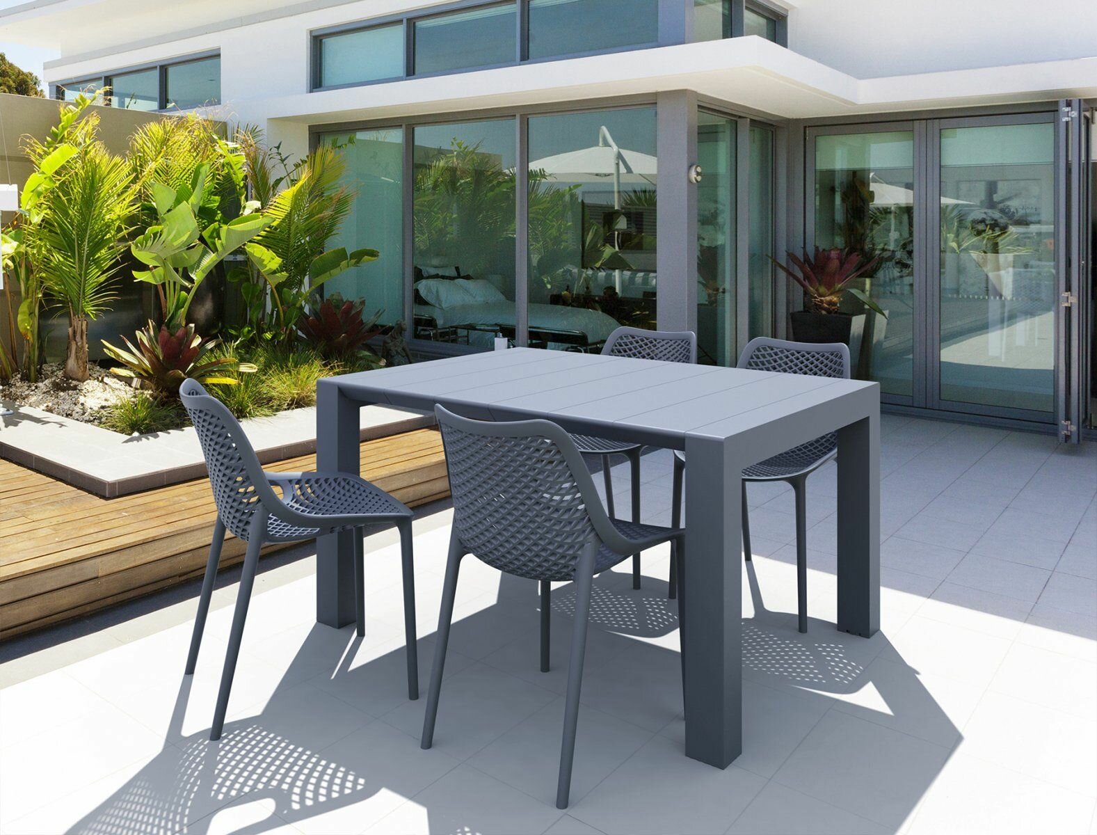 Купить Комплект из 4-х обеденных стульев Siesta Air, садовых, пластиковых, цвет темно-серый