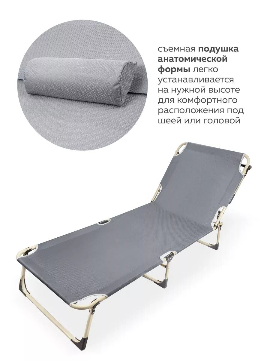 Шезлонг складной с подголовником (670х1930мм, серый) ISMA ISMA-FG-HY-8009GR интересное: