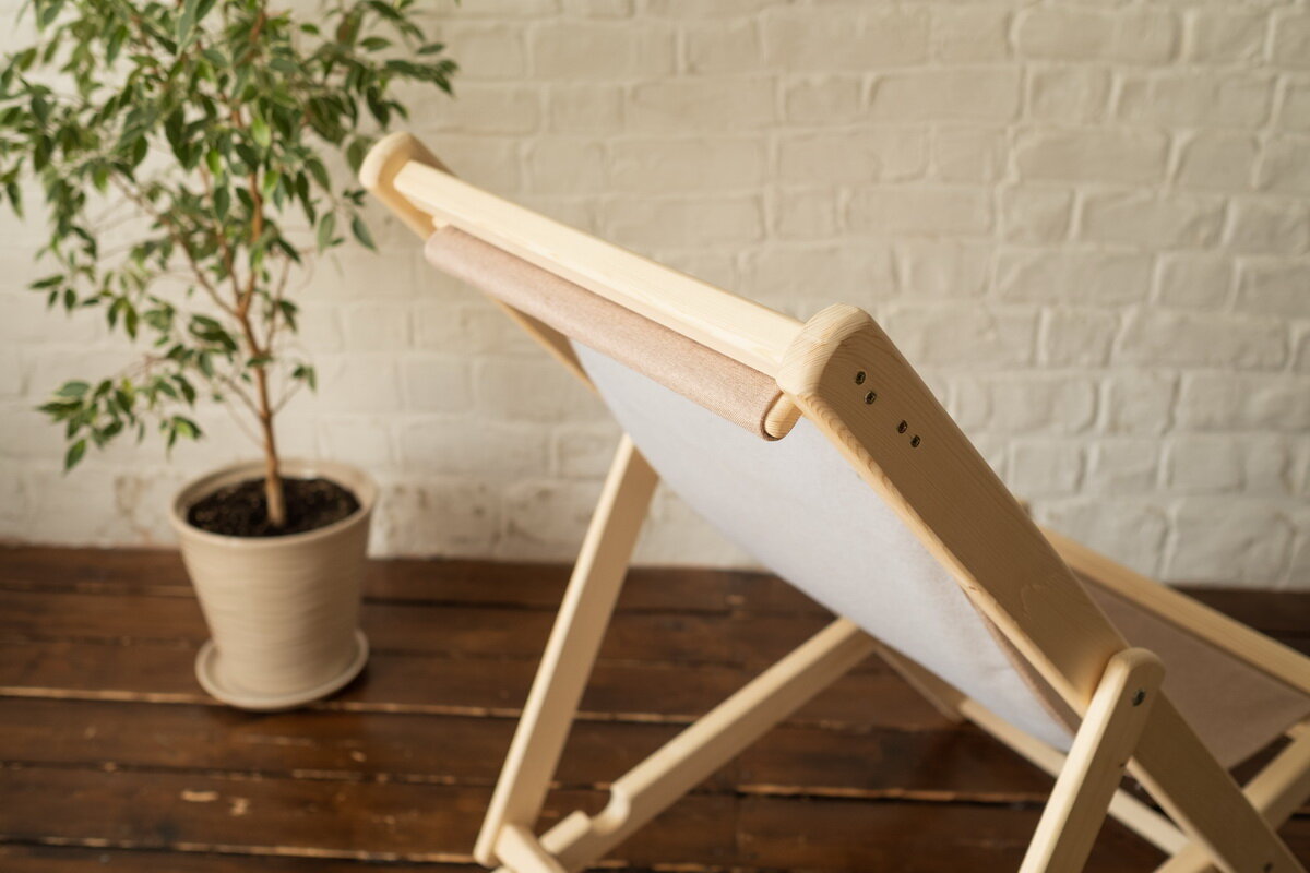 Шезлонг для дачи складной деревянный, ткань бежевая
