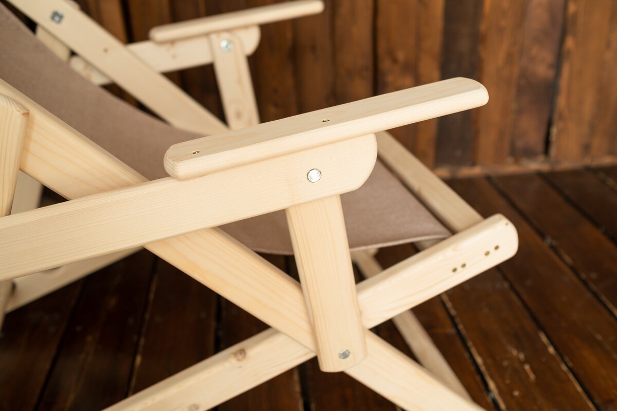 Шезлонг для дачи складной деревянный с подлокотниками, ткань бежевая