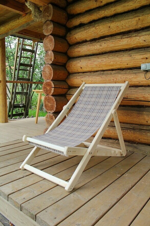 Купить Шезлонг "Wooden World" - складной шезлонг из натурального дерева и тканью в клетку для дачи и отдыха