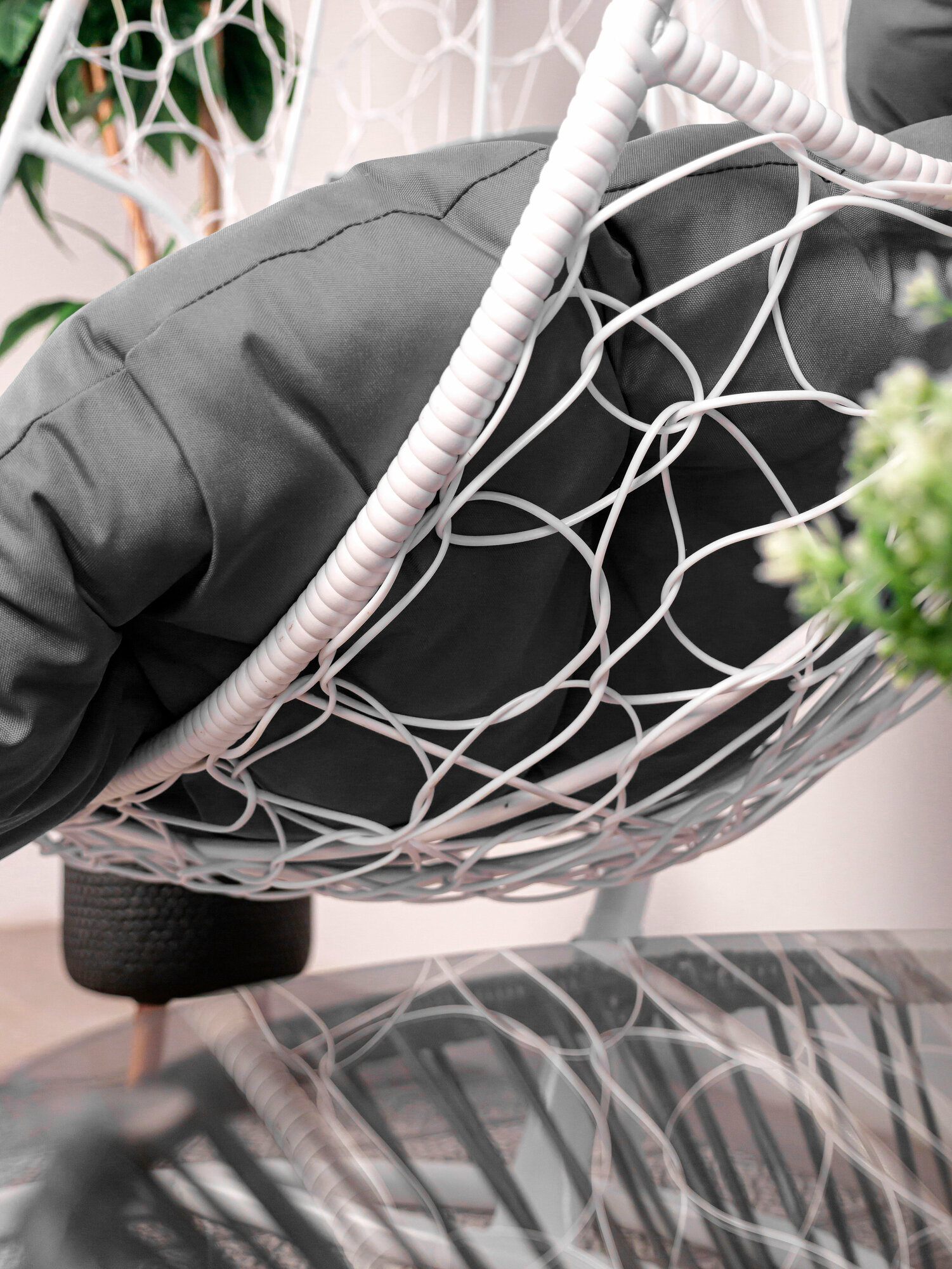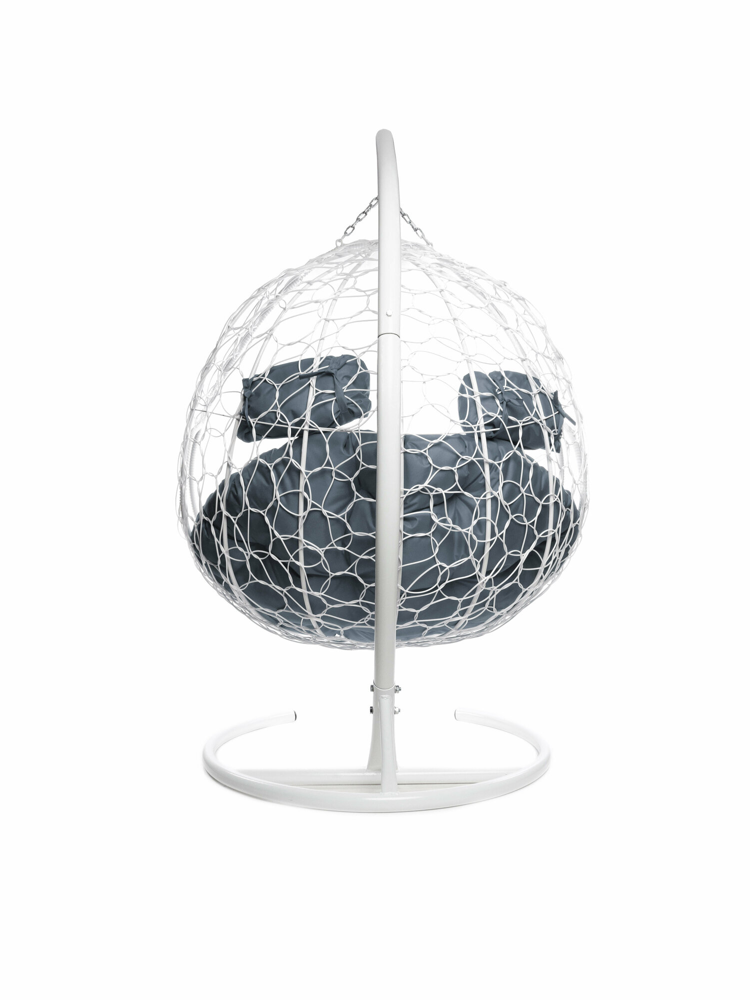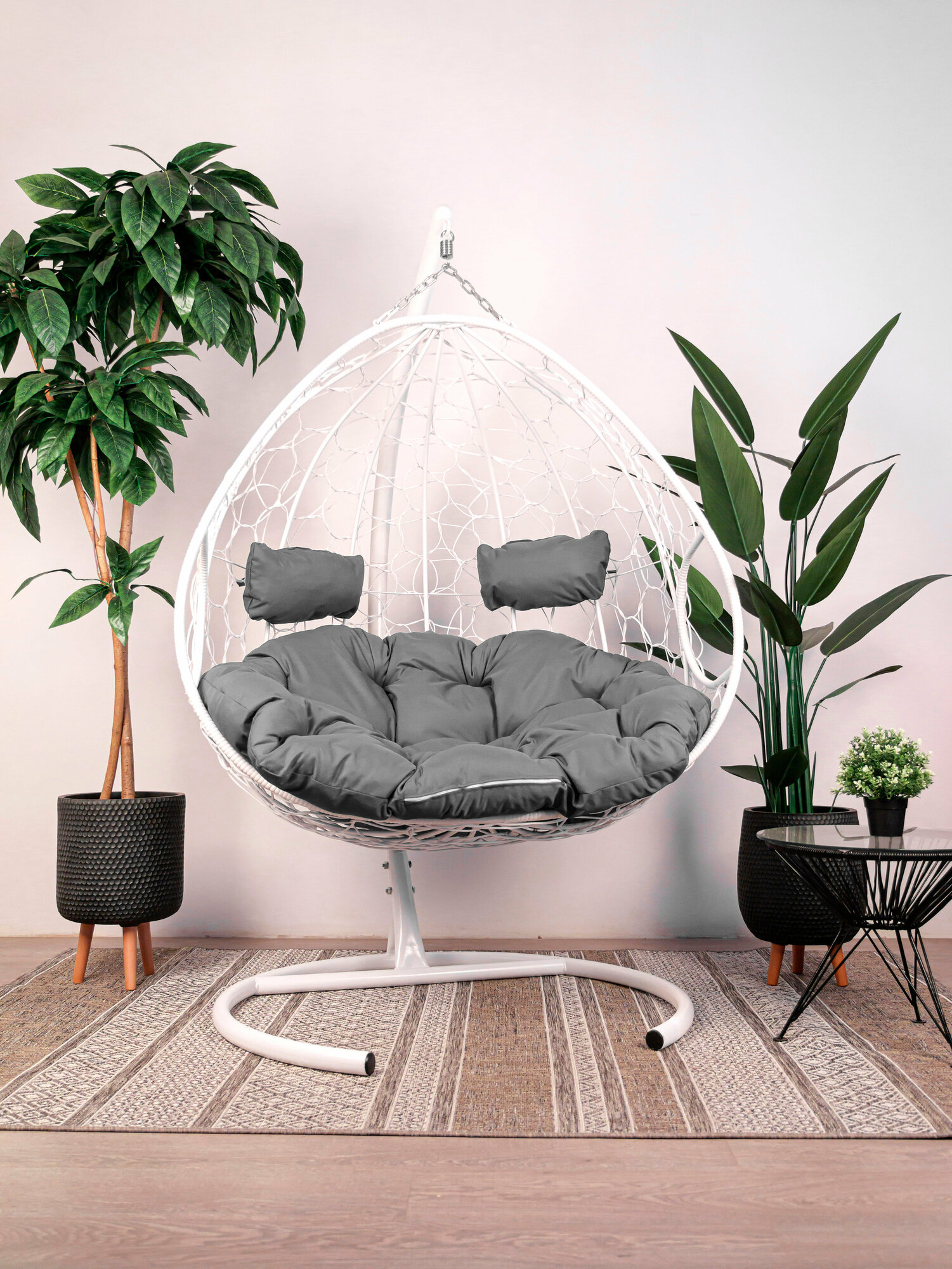 Подвесное кресло кокон двухместное M-group для двоих с ротангом белое+серая подушка