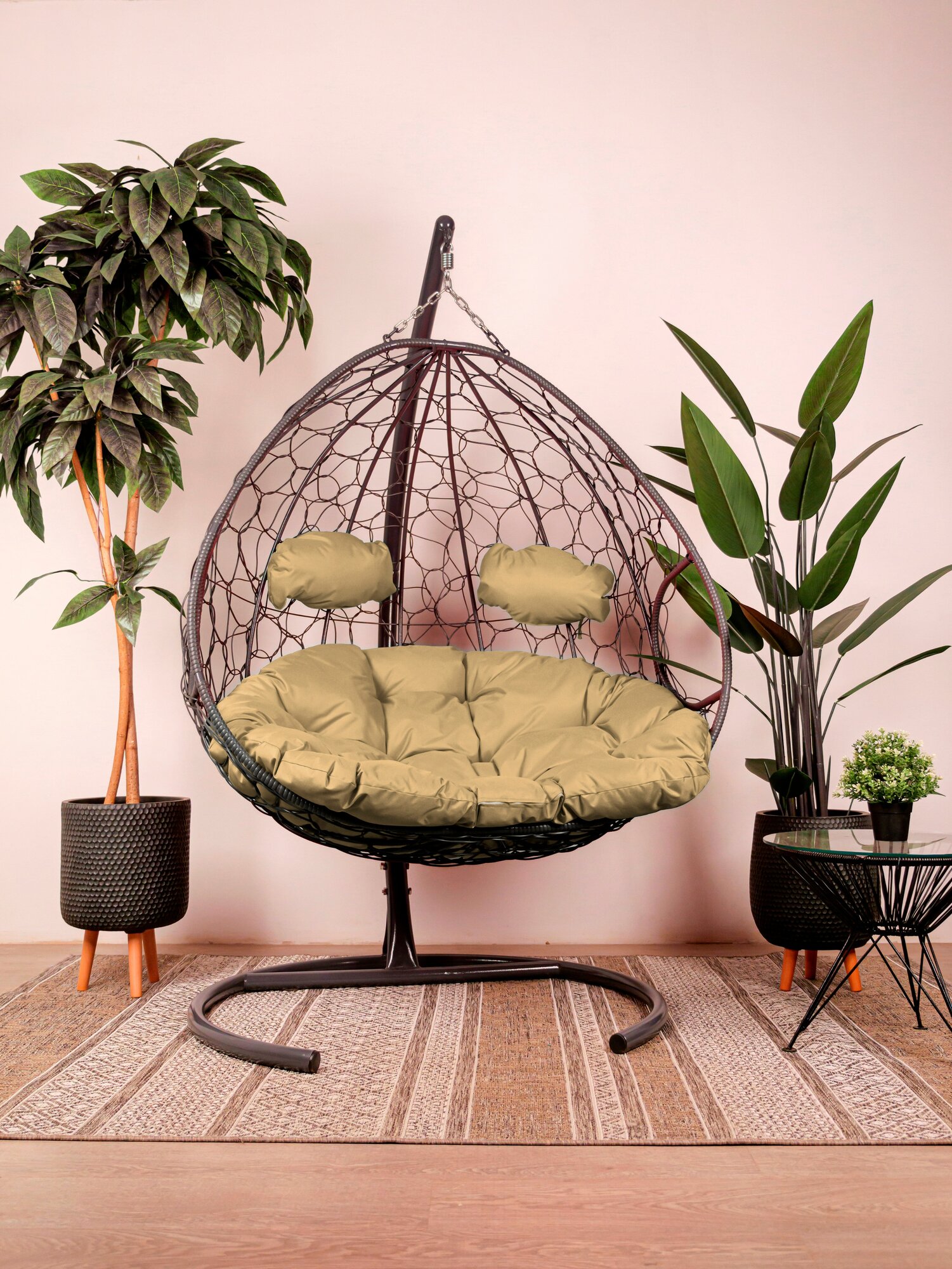 Подвесное кресло для двоих с ротангом коричневое, бежевая