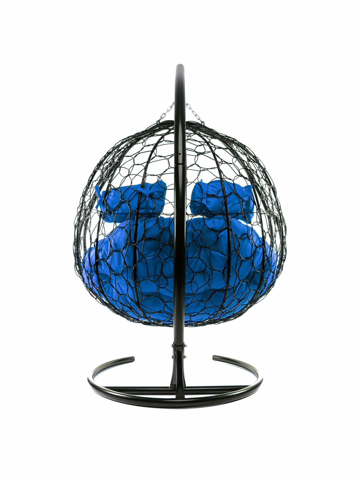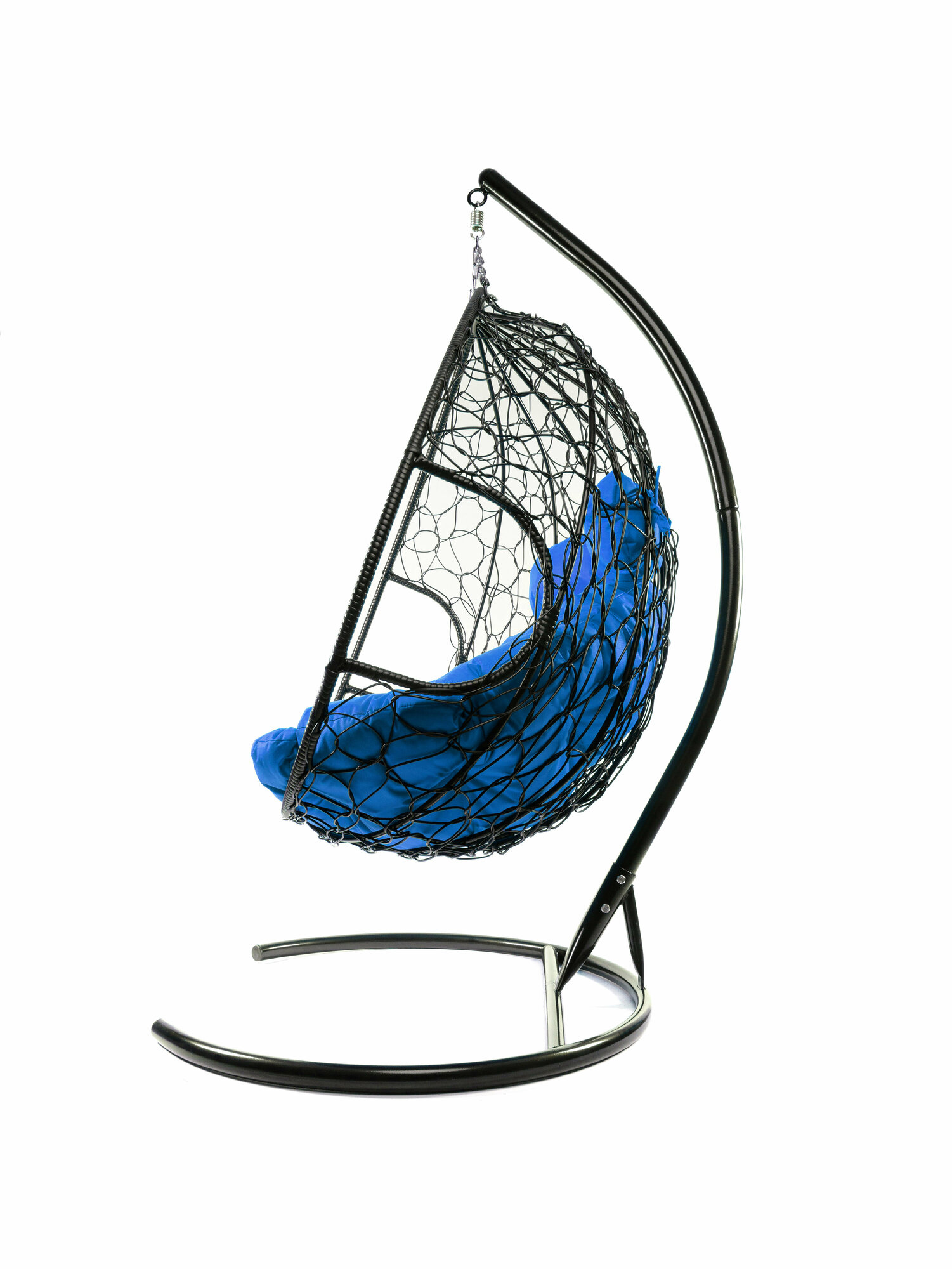 Купить Подвесное кресло для двоих с ротангом чёрное, синяя