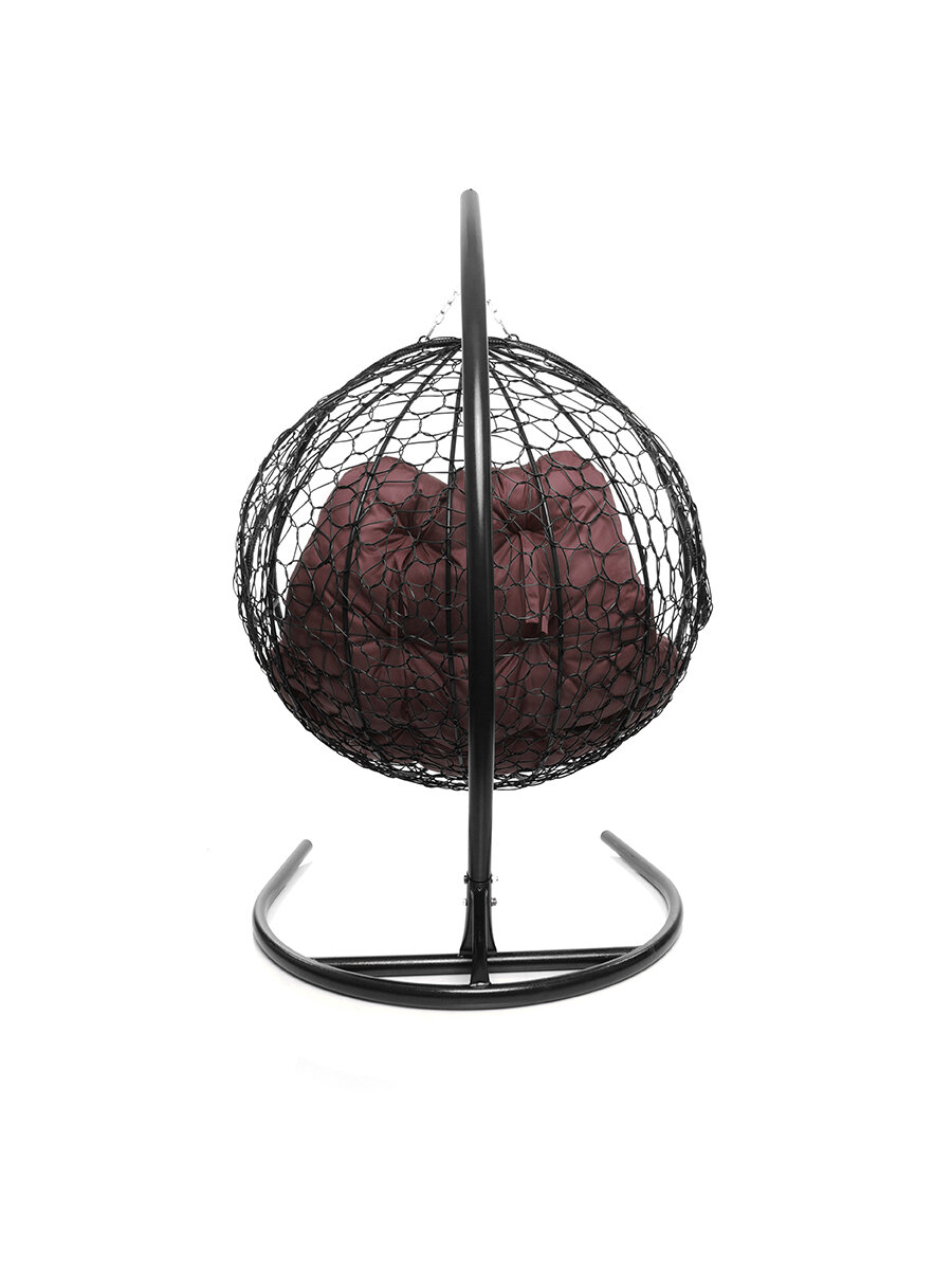 Купить Подвесное кресло M-group для двоих с ротангом чёрное бордовая подушка