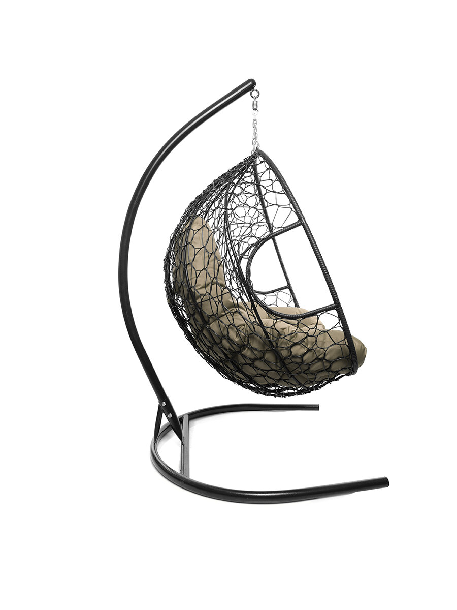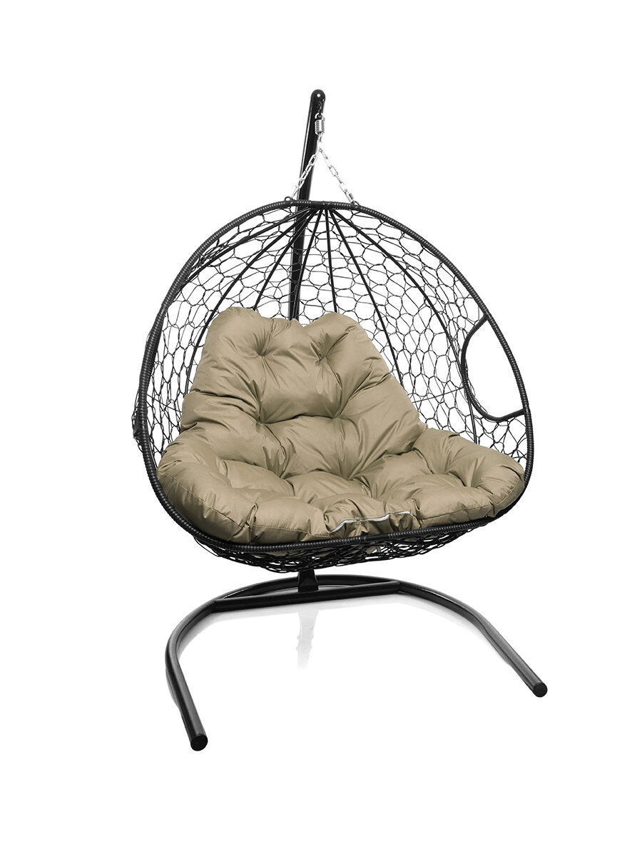 Купить Подвесное кресло M-group для двоих с ротангом чёрное бежевая подушка