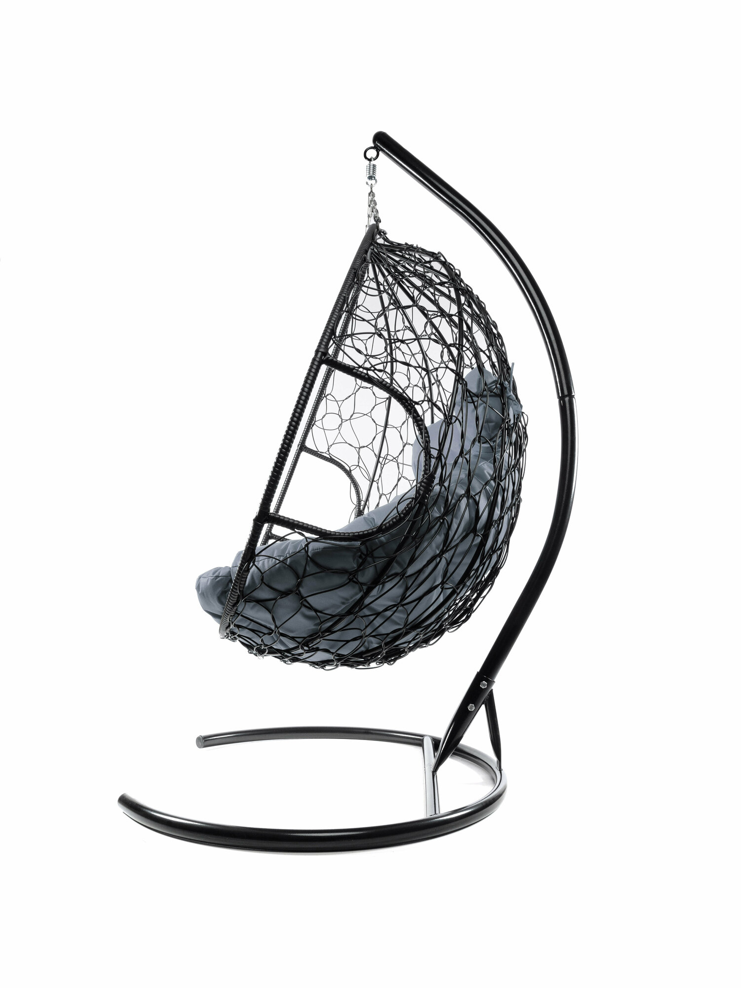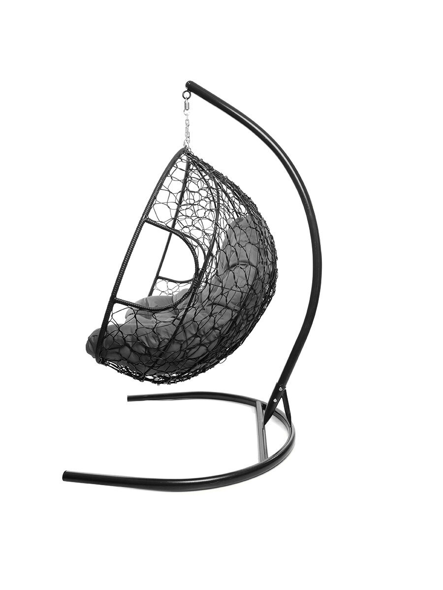 Подвесное кресло M-group для двоих с ротангом чёрное серая подушка