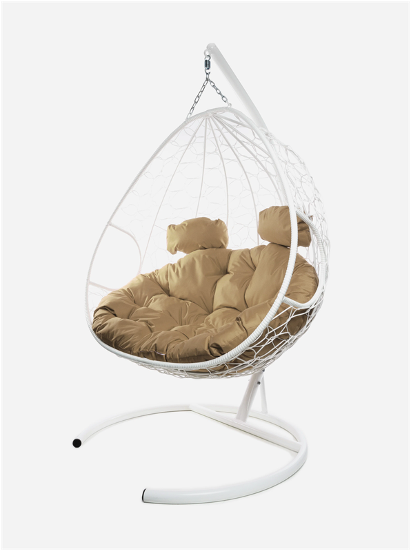 Подвесное кресло с ротангом "Для двоих" белое с бежевой подушкой M-GROUP