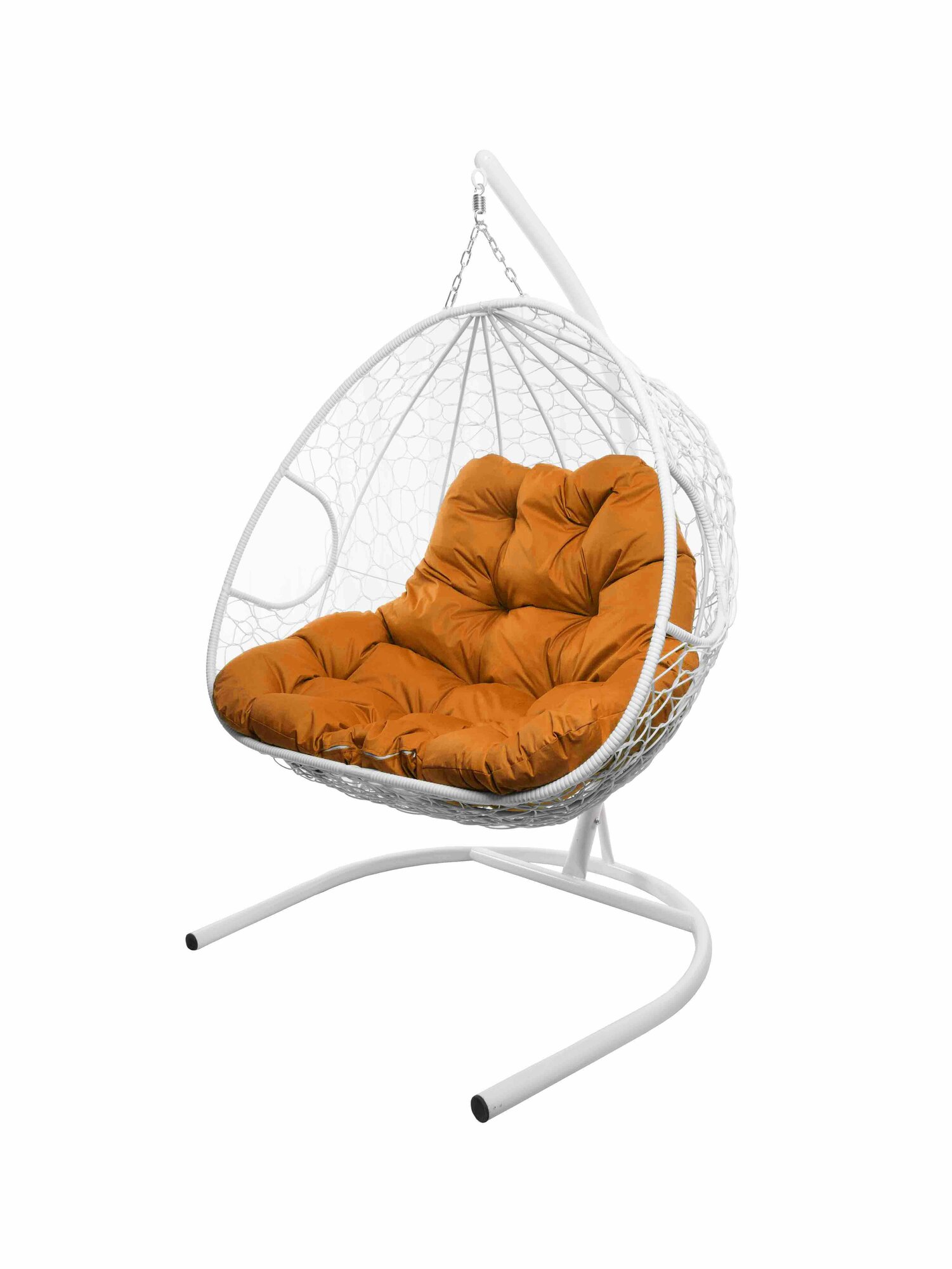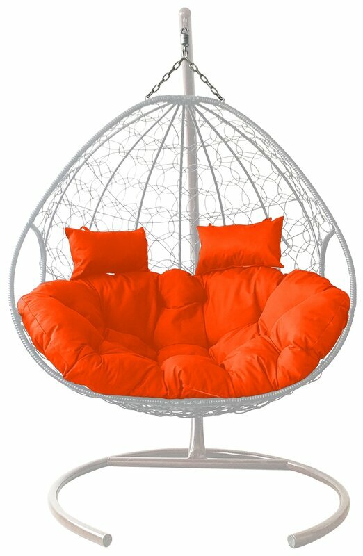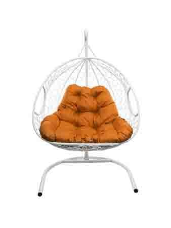 Купить Подвесное кресло из ротанга "Для двоих" белое с оранжевой подушкой M-GROUP