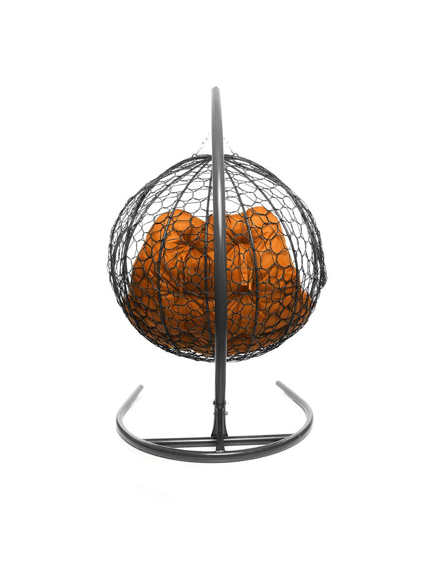 Подвесное кресло M-group для двоих с ротангом чёрное оранжевая подушка