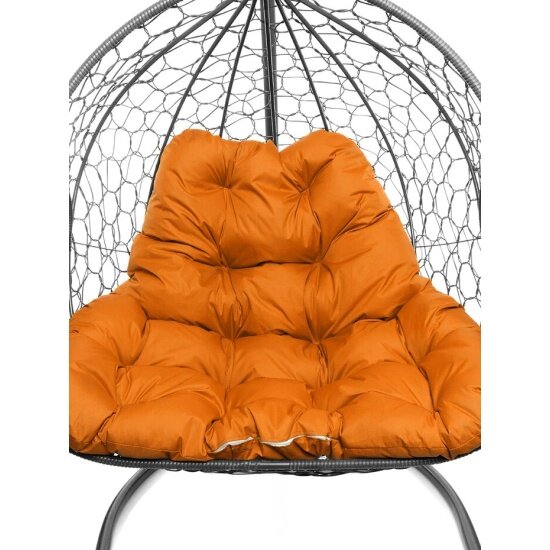 Купить Подвесное кресло M-group для двоих с ротангом серое оранжевая подушка