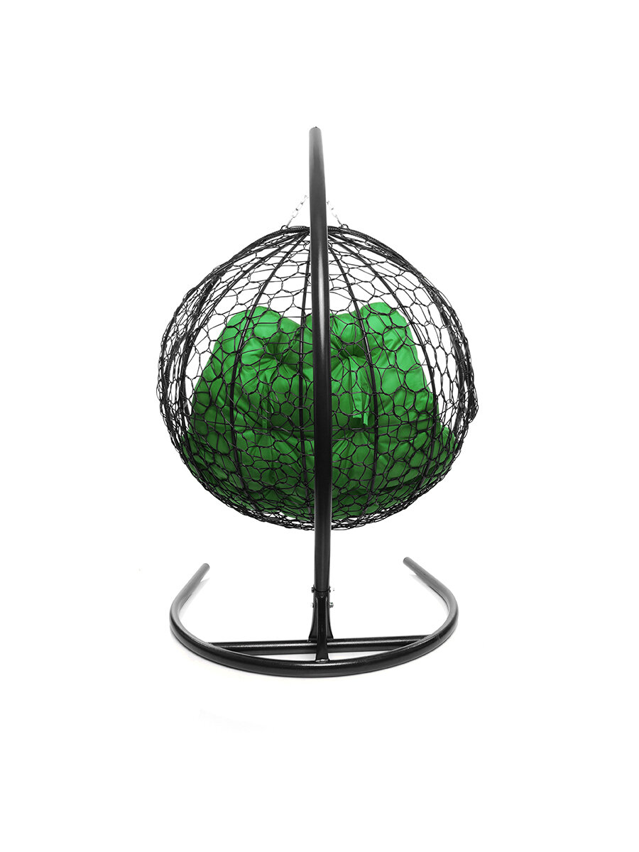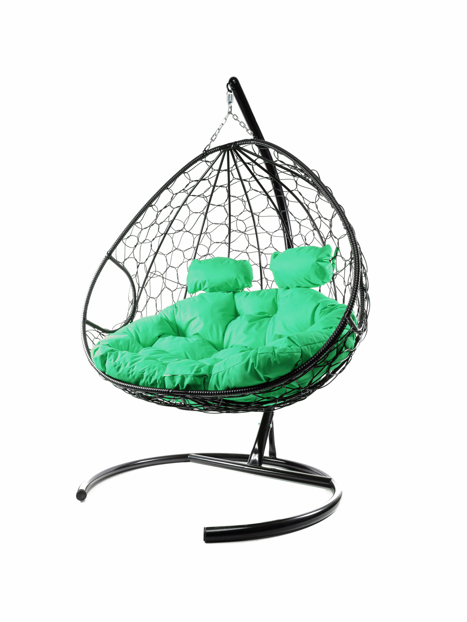 Купить Подвесное кресло M-group для двоих с ротангом чёрное зелёная подушка