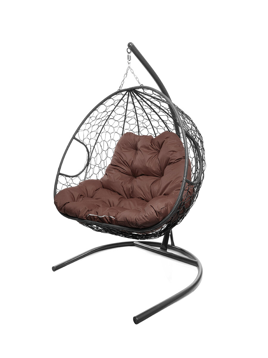 Подвесное кресло M-group для двоих с ротангом чёрное коричневая подушка