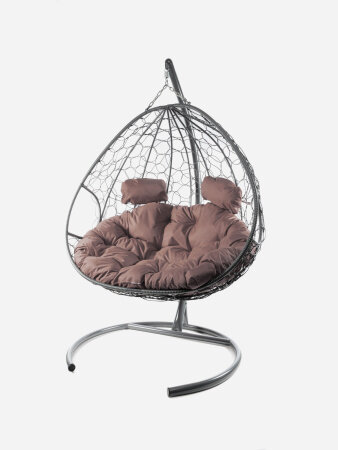 Подвесное кресло для двоих с ротангом коричневое, серая