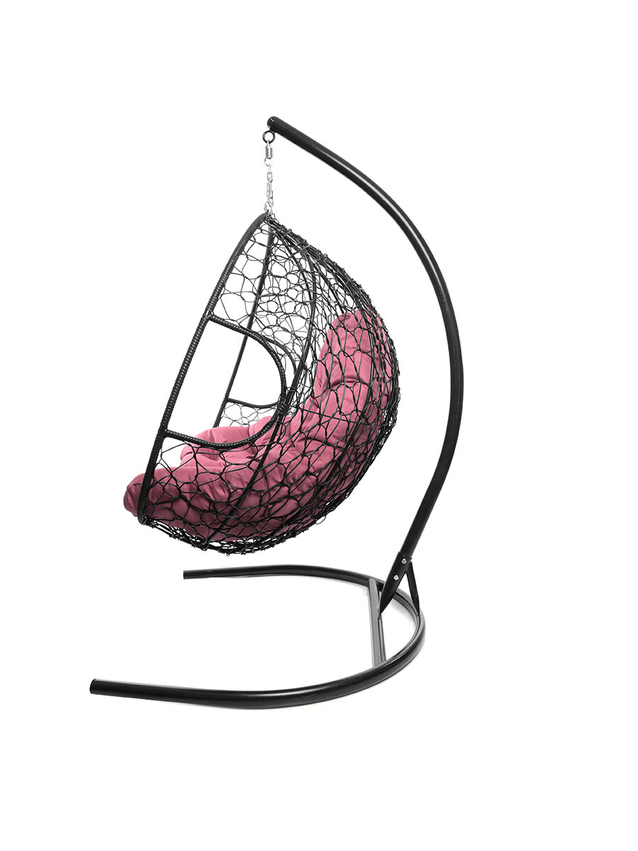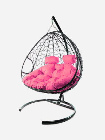 Подвесное кресло кокон двухместное M-group для двоих с ротангом чёрное+розовая подушка