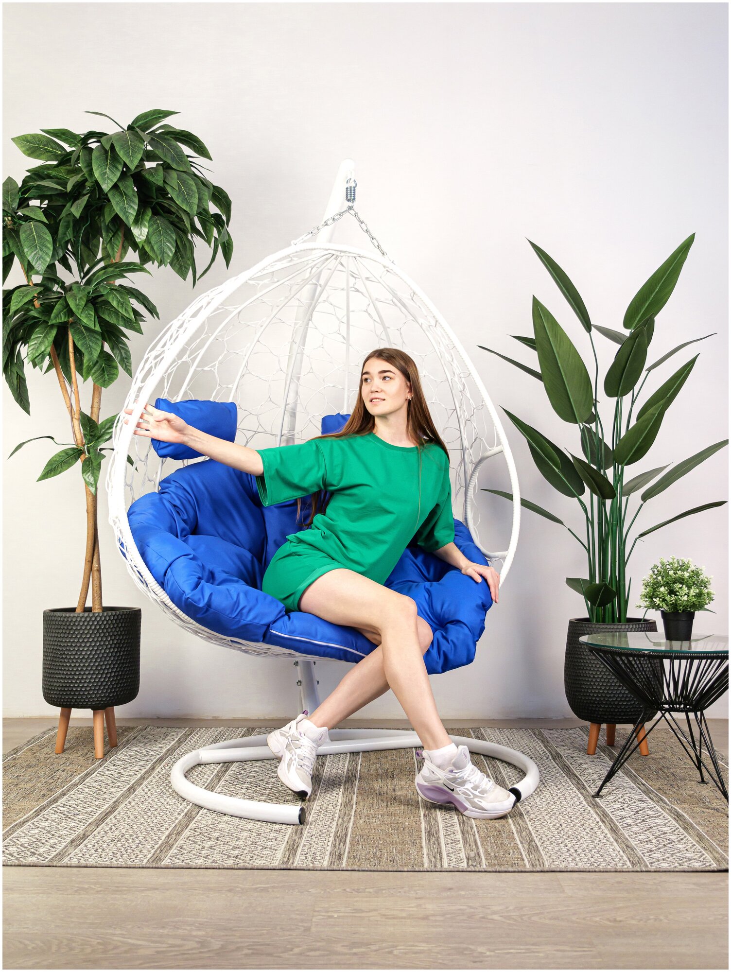 СохранитьПодвесное кресло для двоих с ротангом белое, синяя интересное: