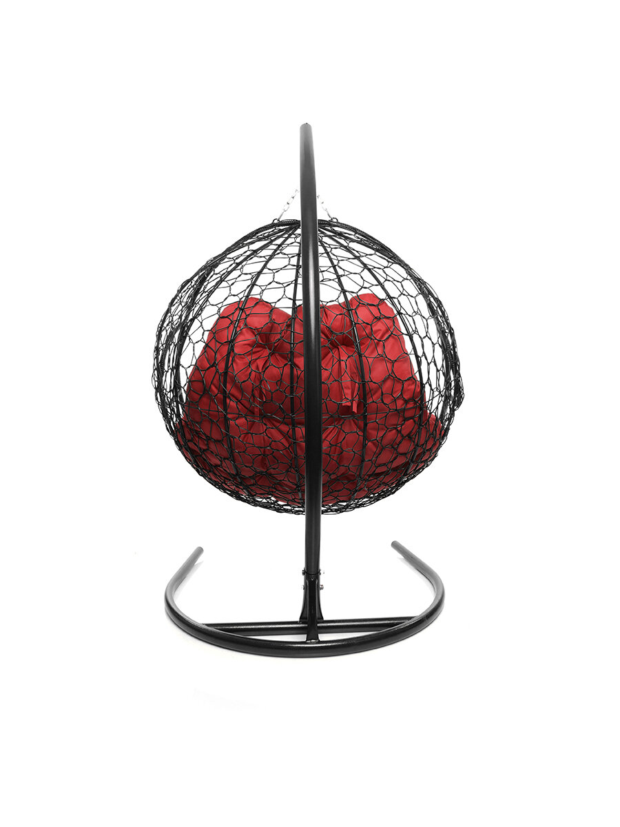 Купить Подвесное кресло M-group для двоих с ротангом чёрное красная подушка