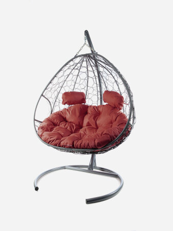 Подвесное кресло M-group для двоих с ротангом серое красная подушка