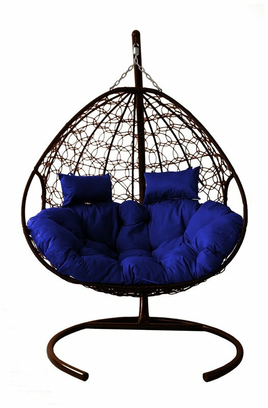 СохранитьПодвесное кресло M-group для двоих с ротангом коричневое синяя подушка интересное: